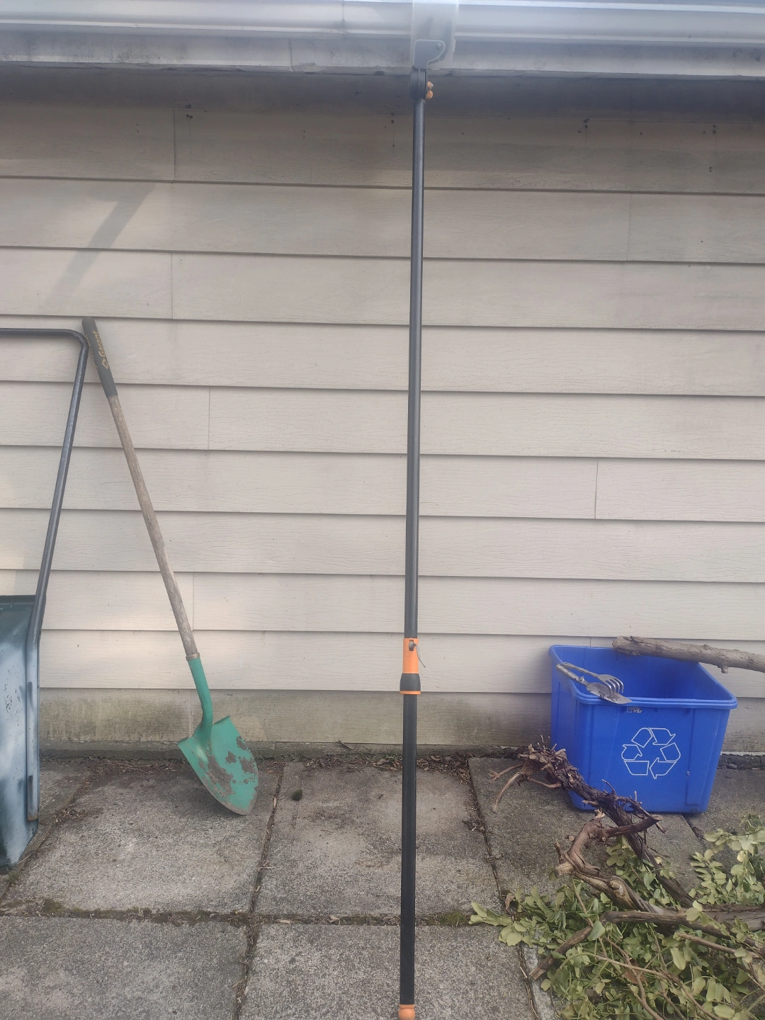 Fiskars Pruning Stik Extendable Tree Pruner allows you to cut high branches without climbing a ladder and make low cuts without bending or kneeling