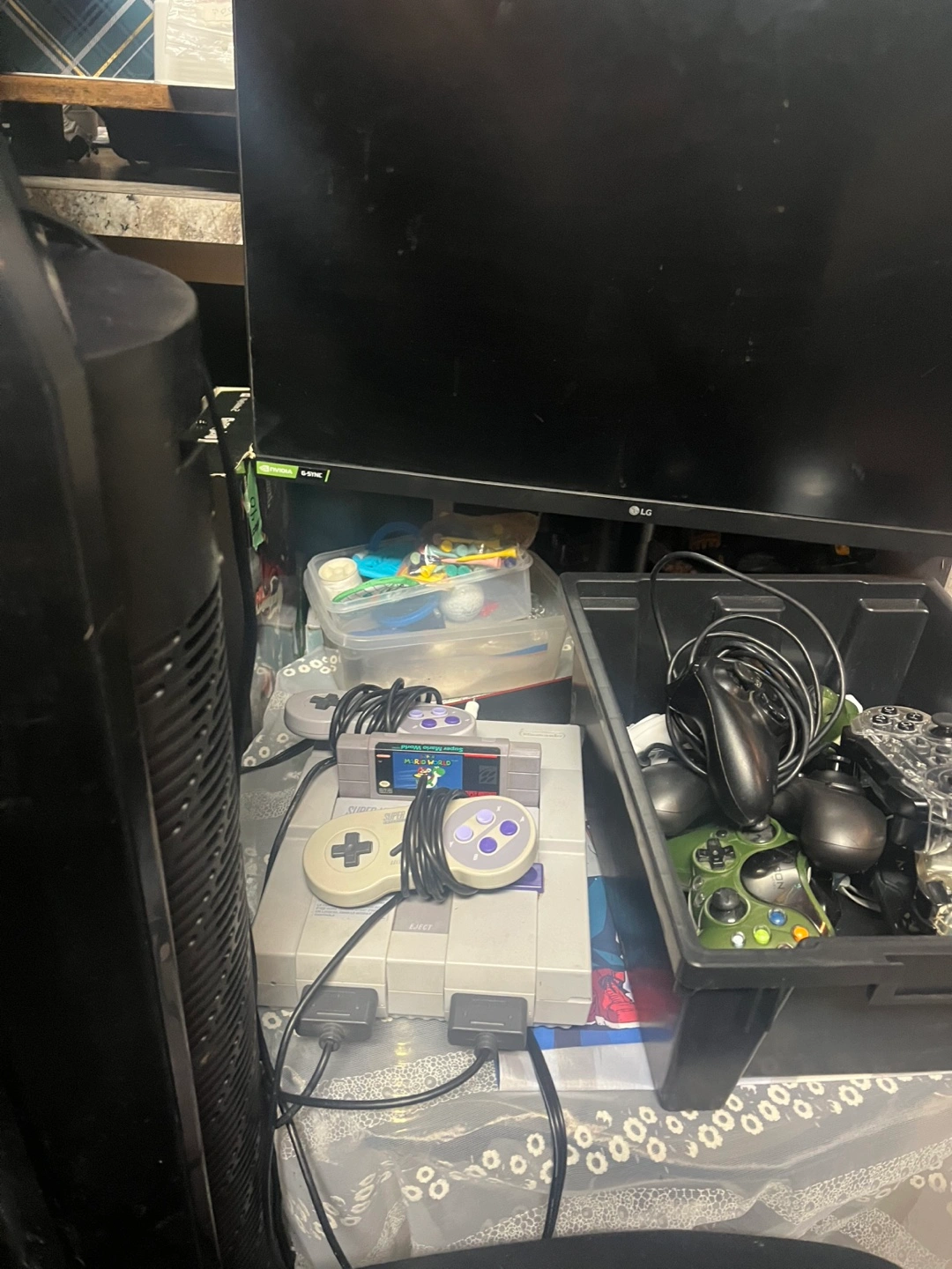 Super Nintendo Entertainment System with controllers and games