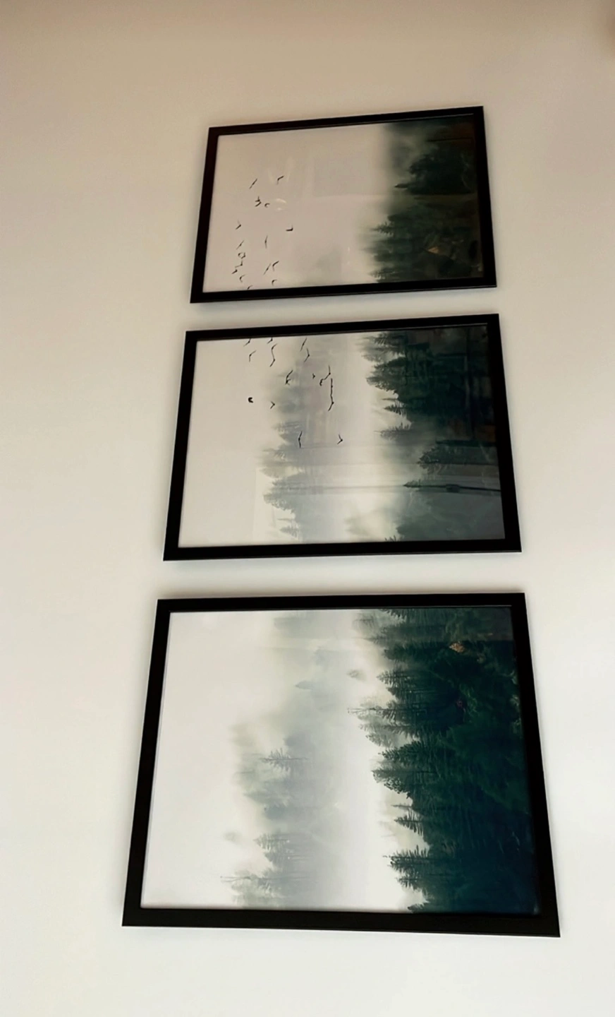 Three prints depicting a misty forest scene. Perfect for adding a touch of nature to your home decor.
