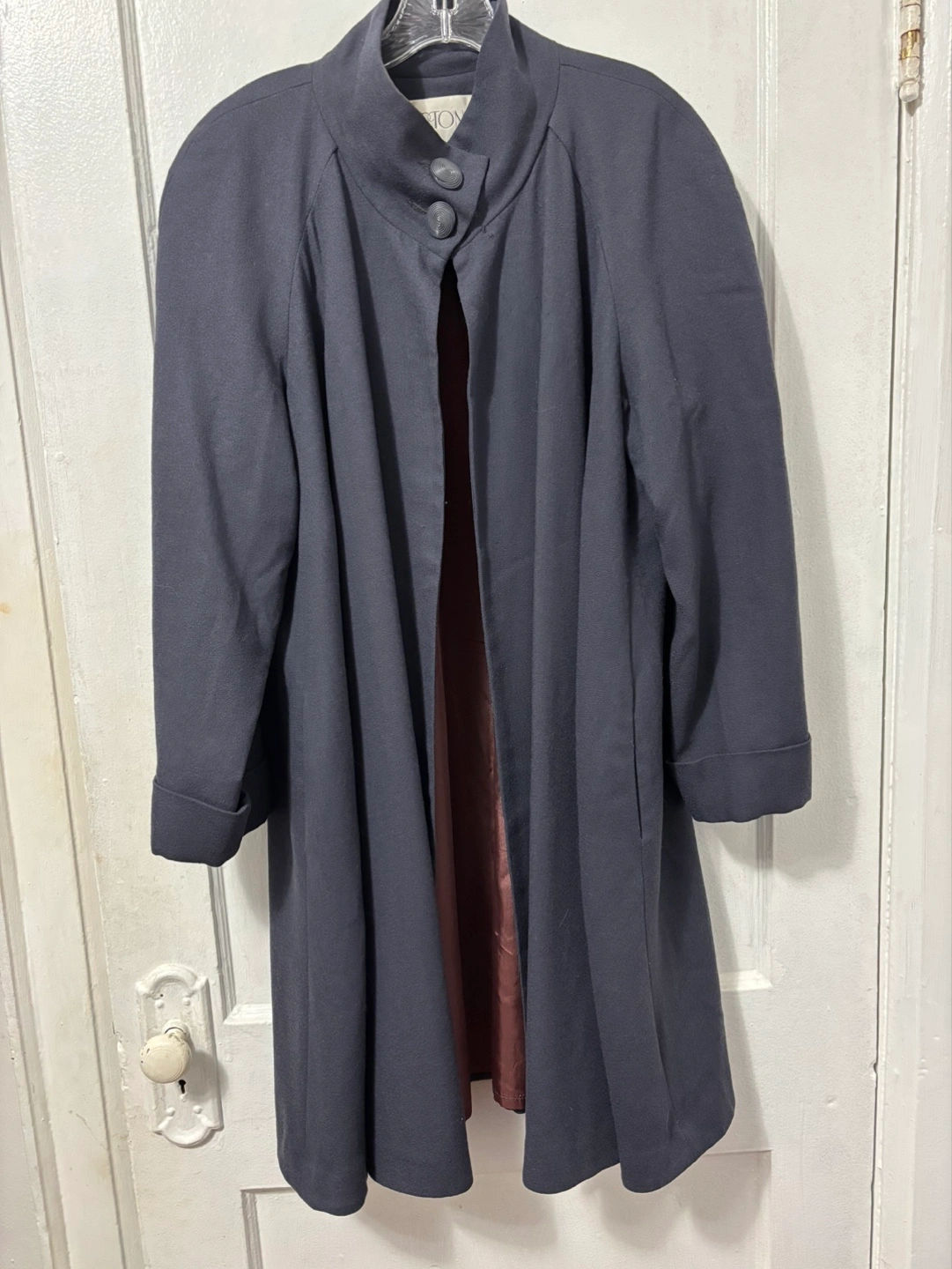 Women's longline coat. Purple mauve lilac colour. Features a mandarin collar and long sleeves. Button closure. 100% wool with inner lining. needs a steam (available for an extra $10)