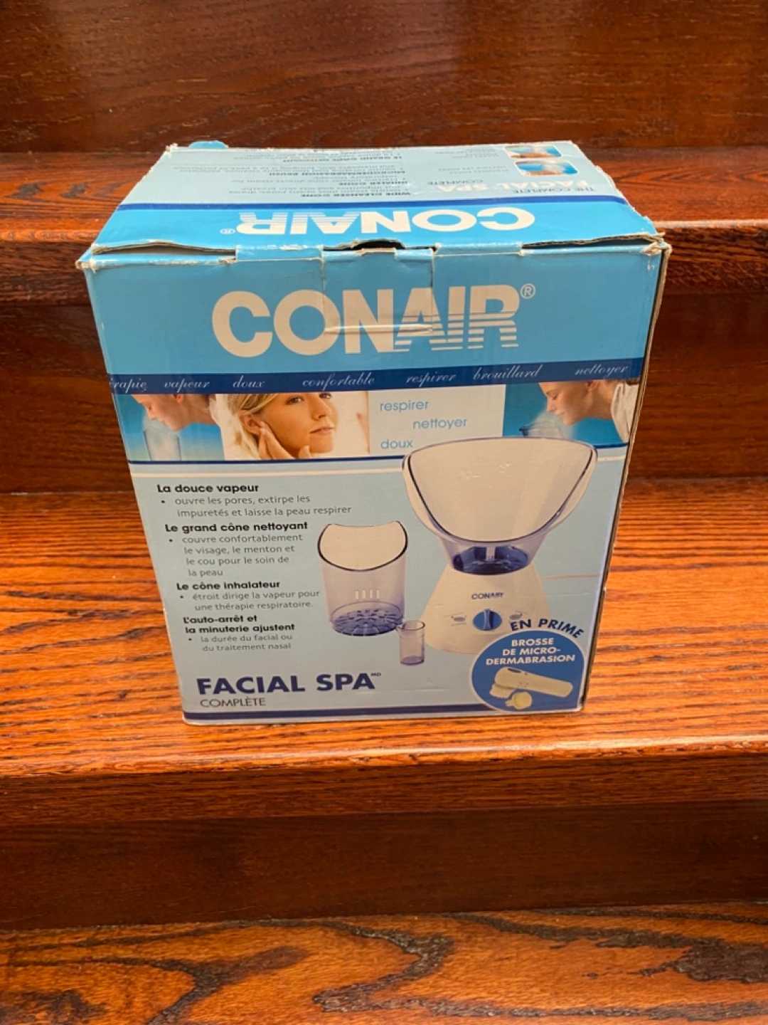 Conair facial steamer. Includes wide and narrow cones. Features automatic shutoff and timer. Gently opens pores, draws out impurities. Good condition Cash only