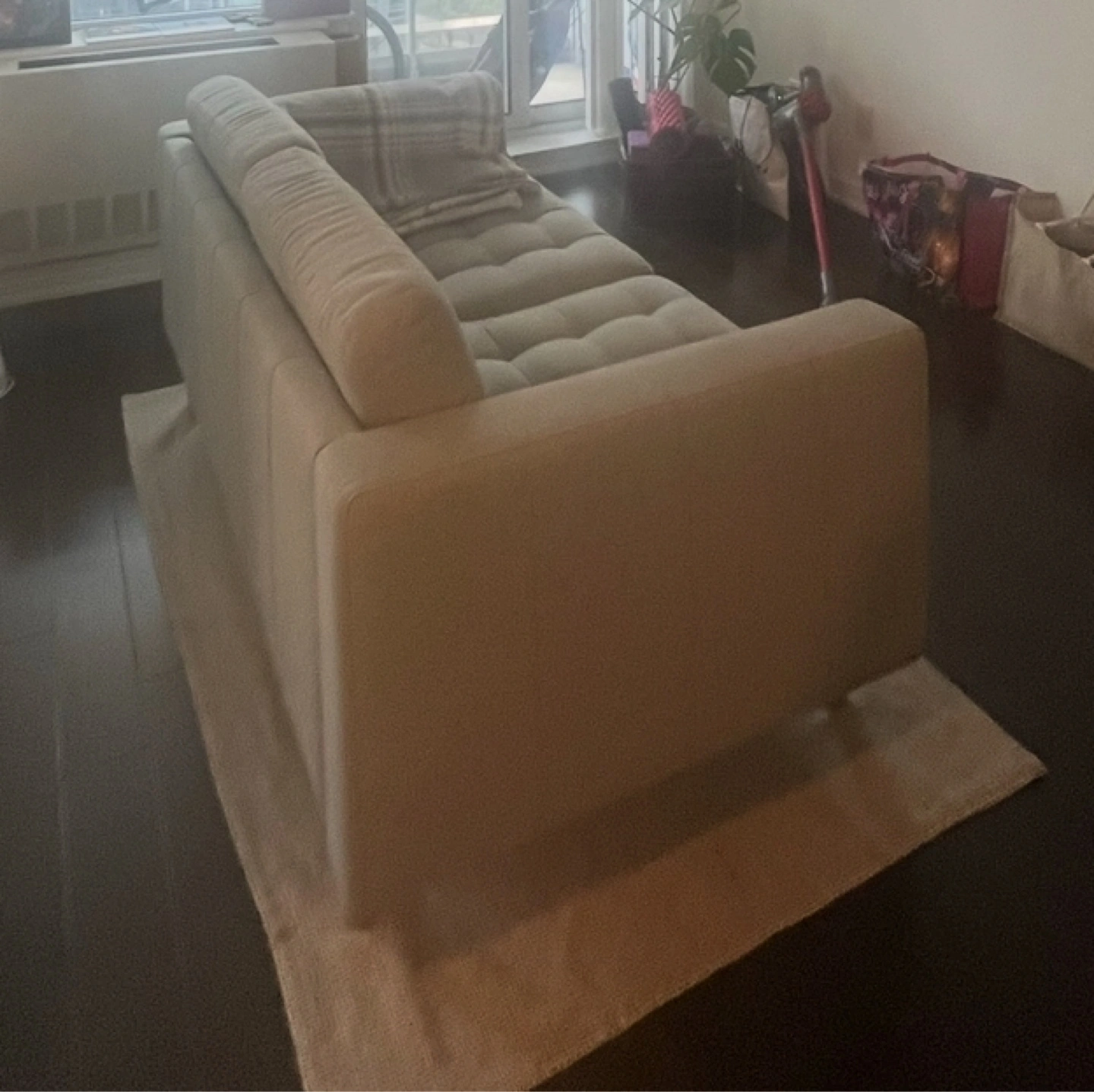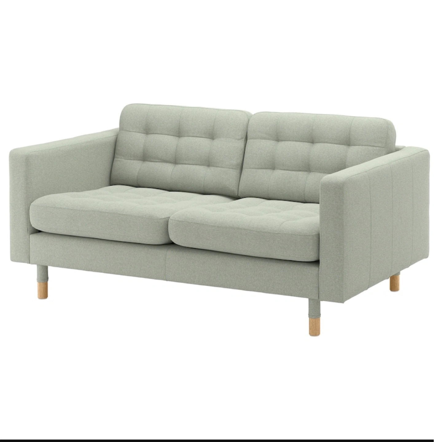 117Morabo Loveseat 2 Years old good condition Gunnard Light Green and Wooden legs negotiable pick up only regular price is $699 dm only if serious and if you want more photos