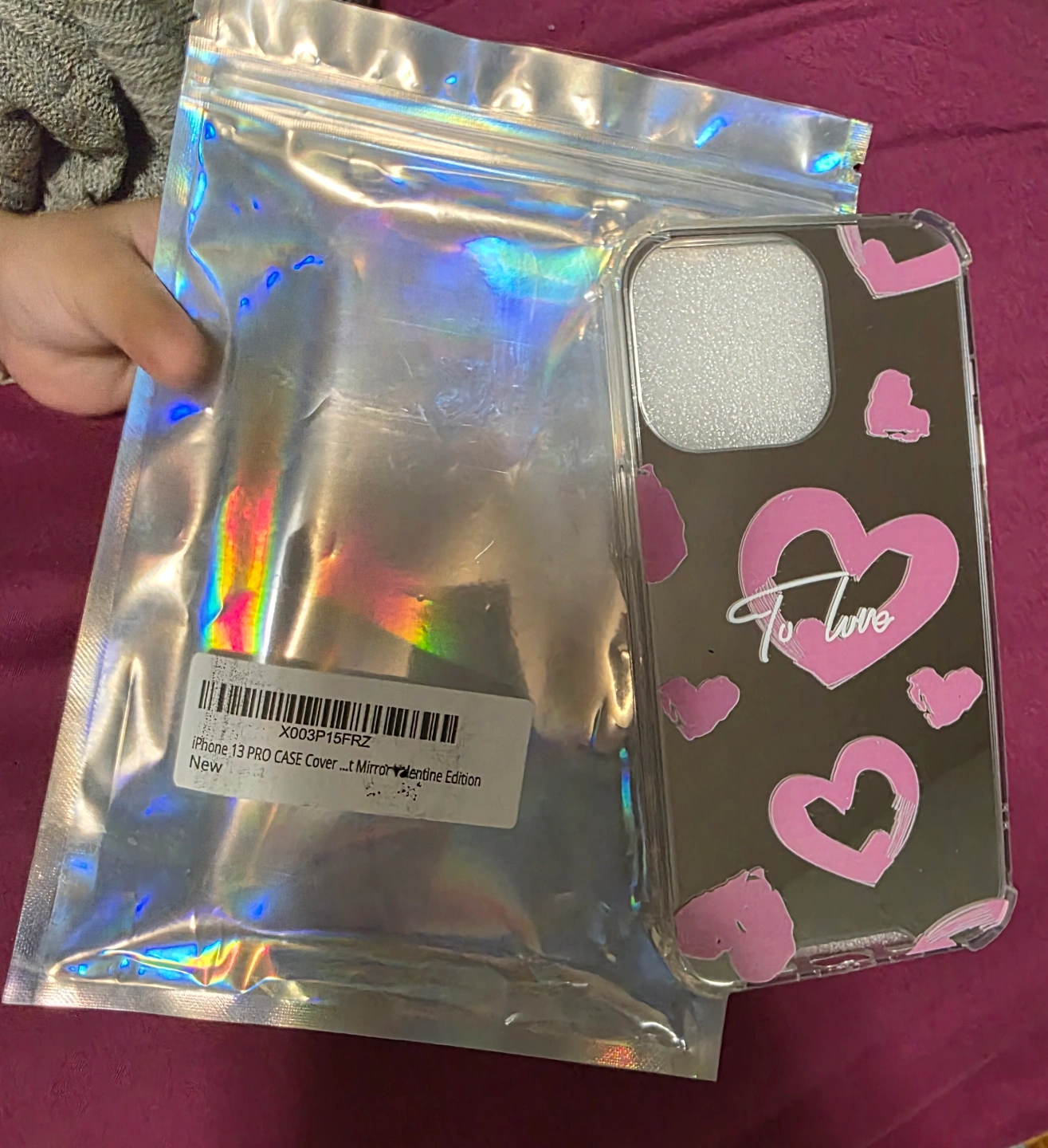 Brand new iPhone 13 Pro case. Clear case with pink hearts and "To Love" print. Mirror finish.