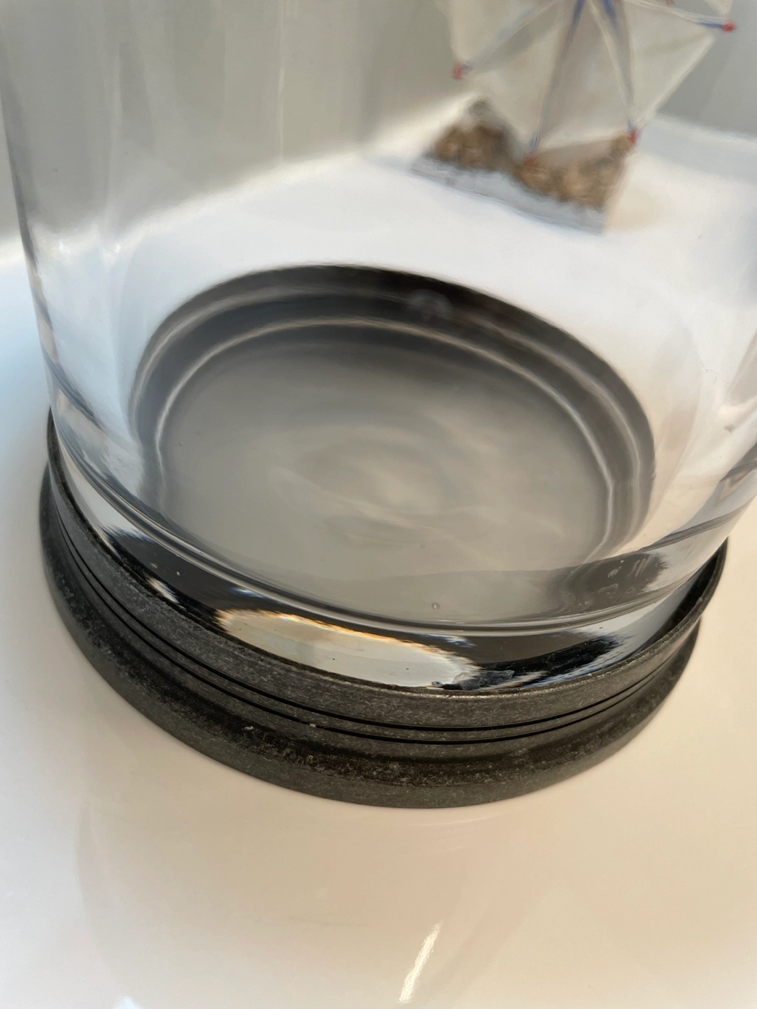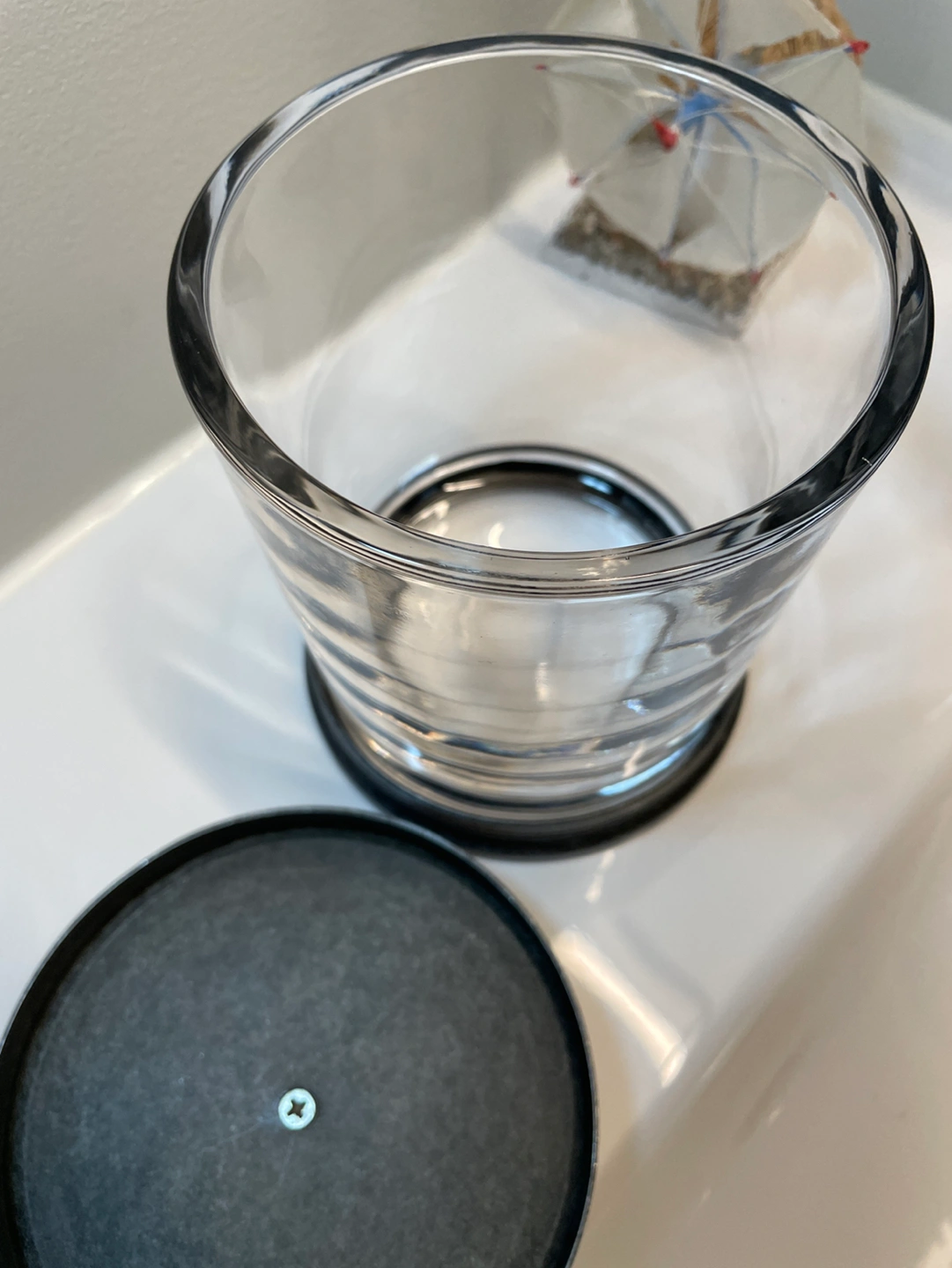 Glass containers with metal bottoms and lids.