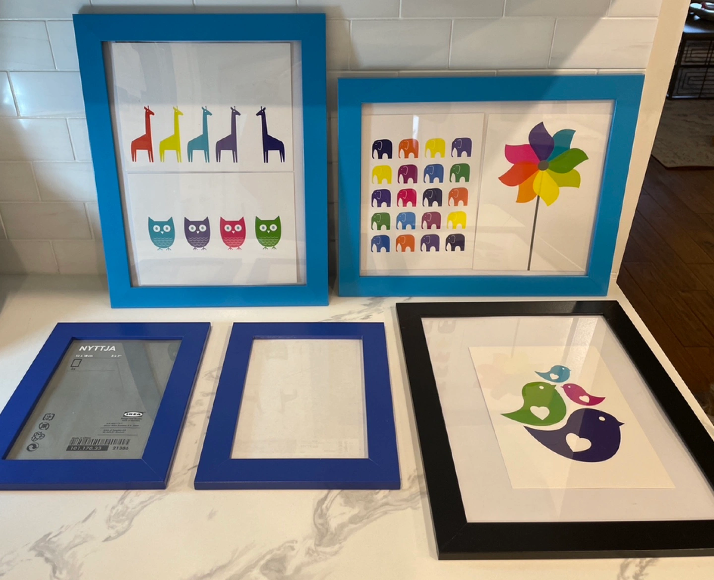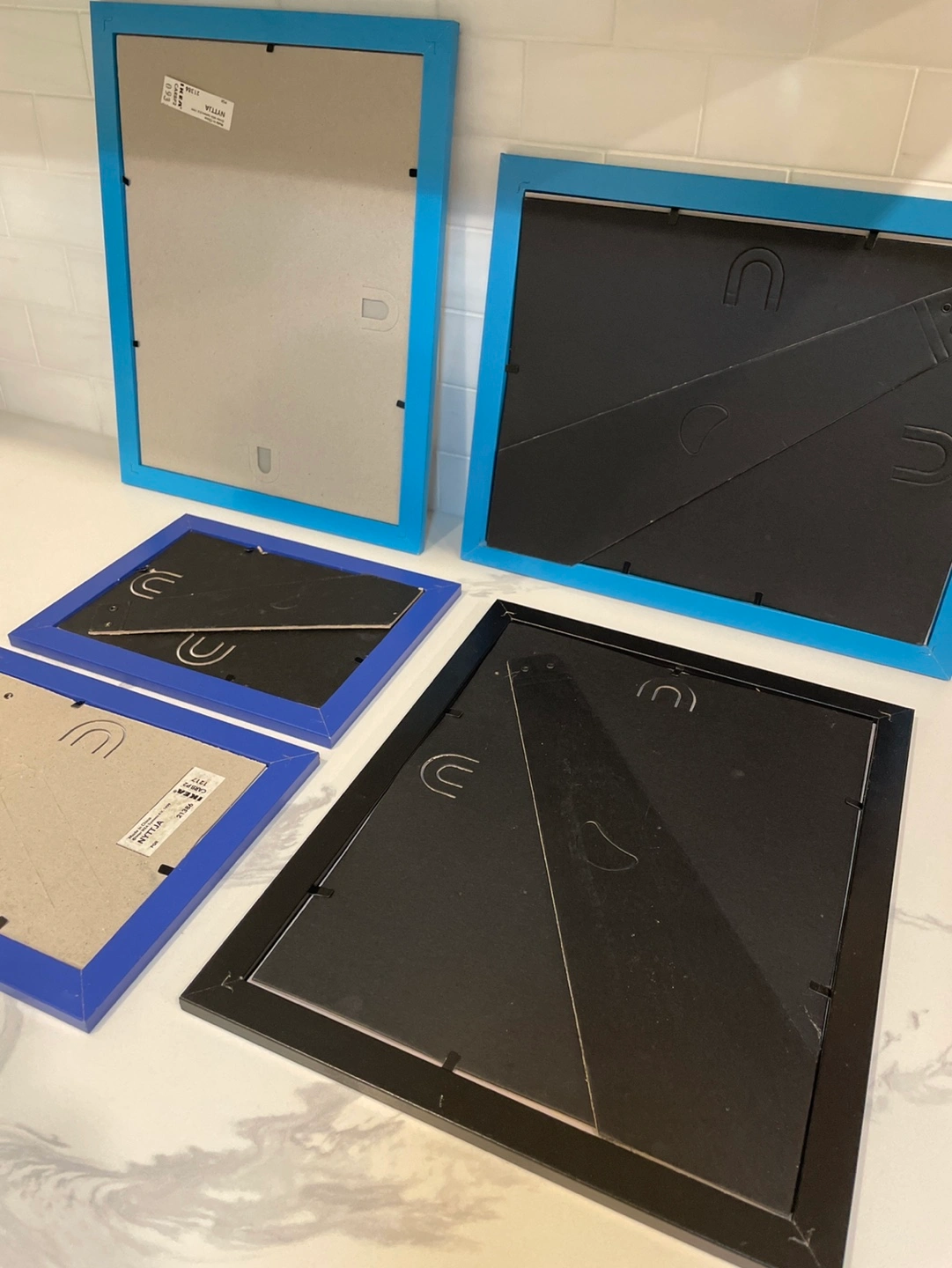 All 5 frames sold together or separately, pls feel free to reach out and make an offer to sell separately if you don’t need all 5. There are no scratches and I’ve included the IKEA 5 hard stock paper prints, they can be removed easily.