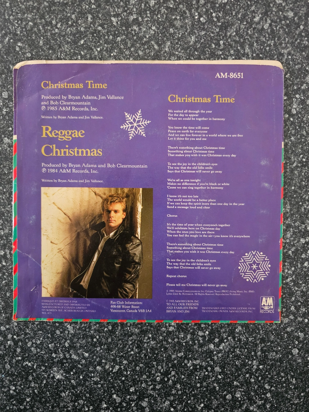 Bryan Adams - Christmas Time 7" Single - Reggae Christmas