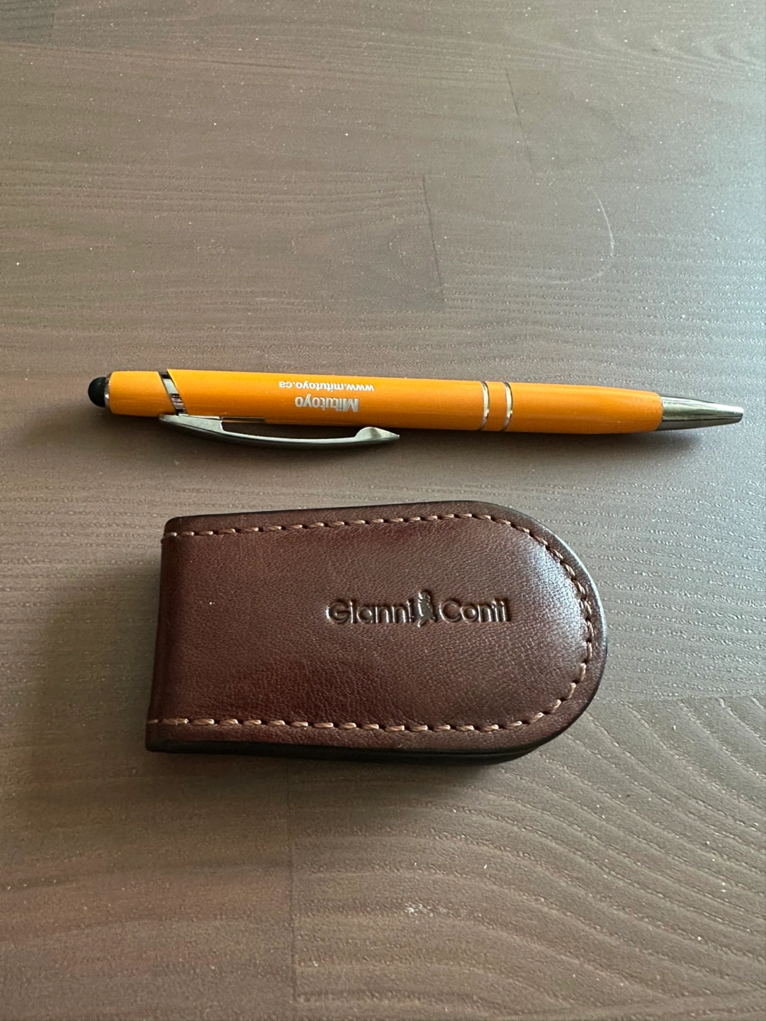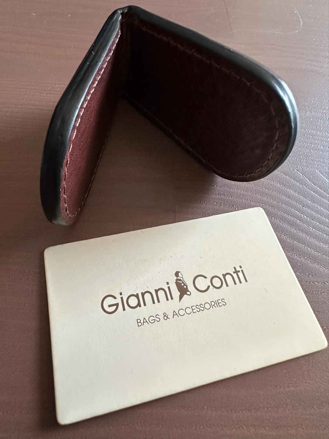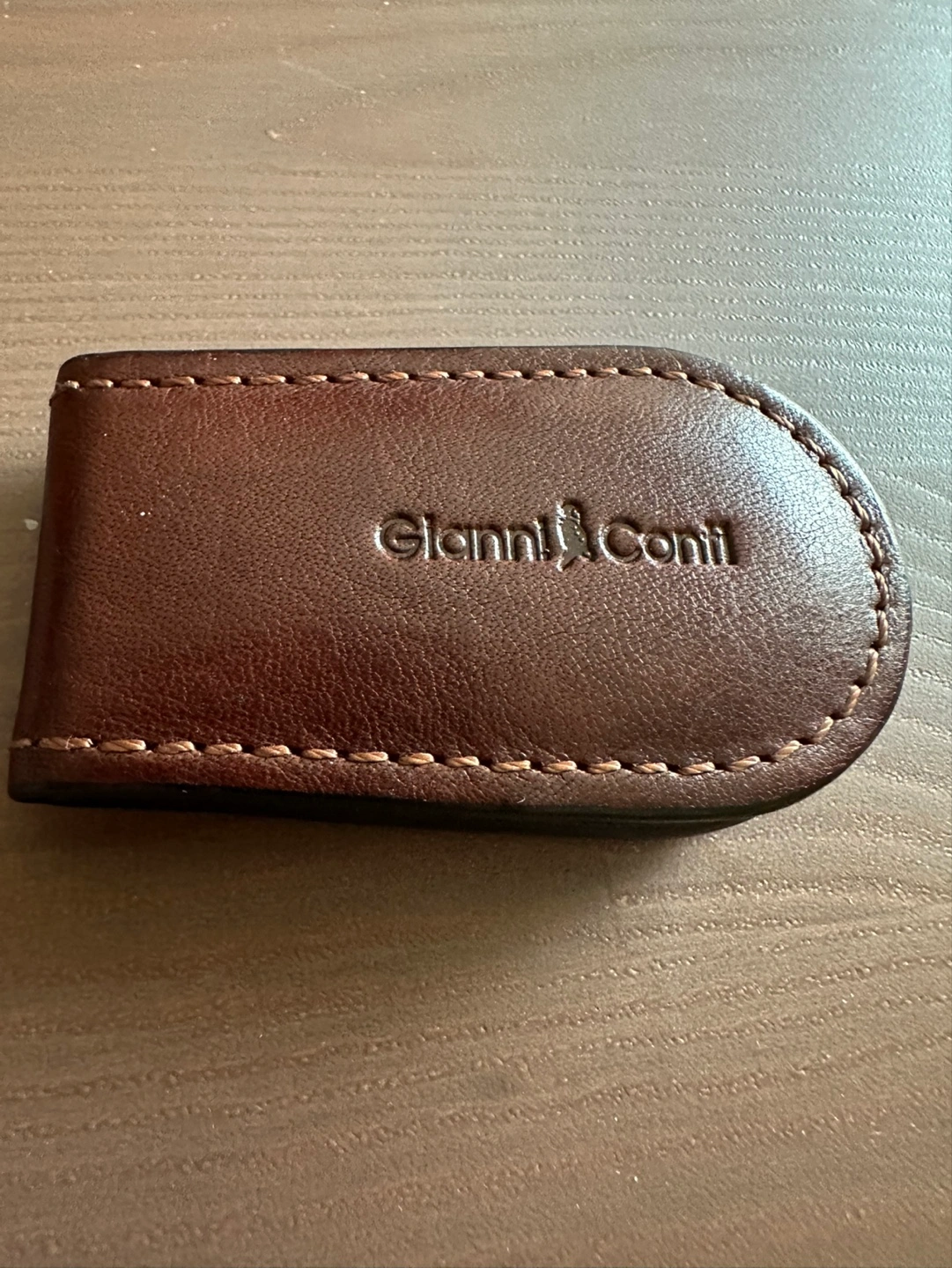 Brown leather money clip. Genuine leather. Compact design. Holds cash securely. Includes authenticity card. Add a touch of sophistication to your everyday carry with this premium Gianni Conti leather money clip. Crafted with meticulous attention to detail, it's perfect for securely holding your cash while exuding timeless elegance.