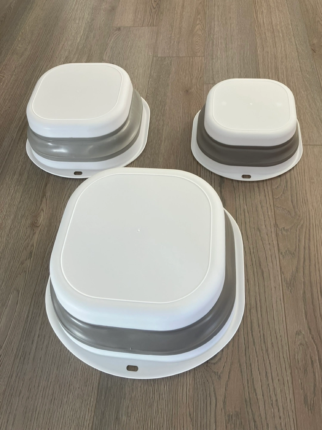 Brand new white and grey 3-Pack Collapsible Wash Basin, space saving design,Portable Baby Bottle Washing Basin, perfect for laundry/ washing dishes.Suitable for Camping Travel Facial Foot Washing, Baby Care/Outdoor Adventure/Home