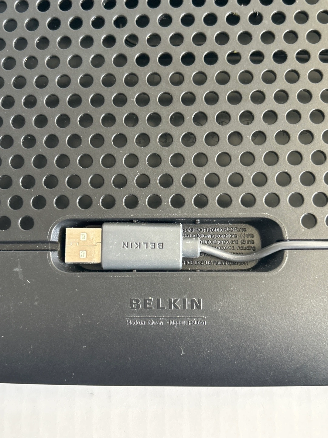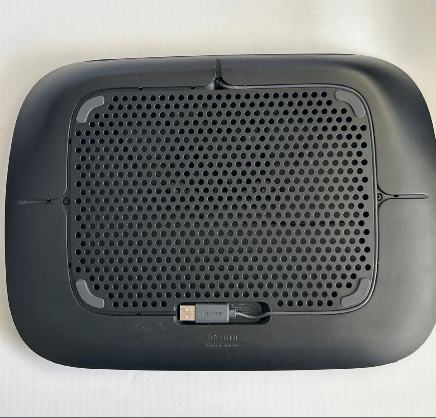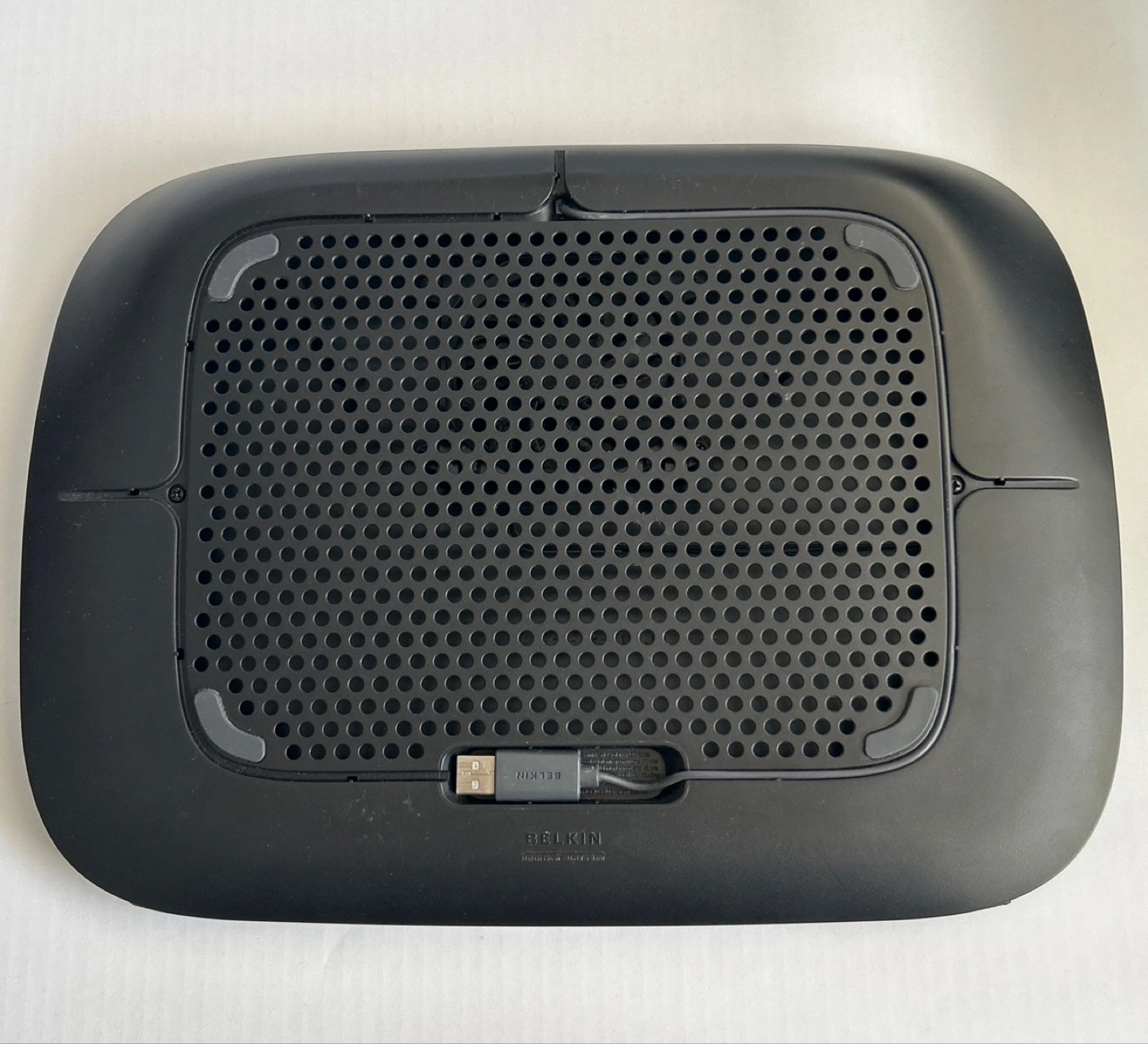 Used Belkin laptop cooling pad. USB powered. Model F5L061. Features a perforated surface for ventilation. Good condition. Clean and ready to use. Smoke/Pet free home. Cash and pick up only.
