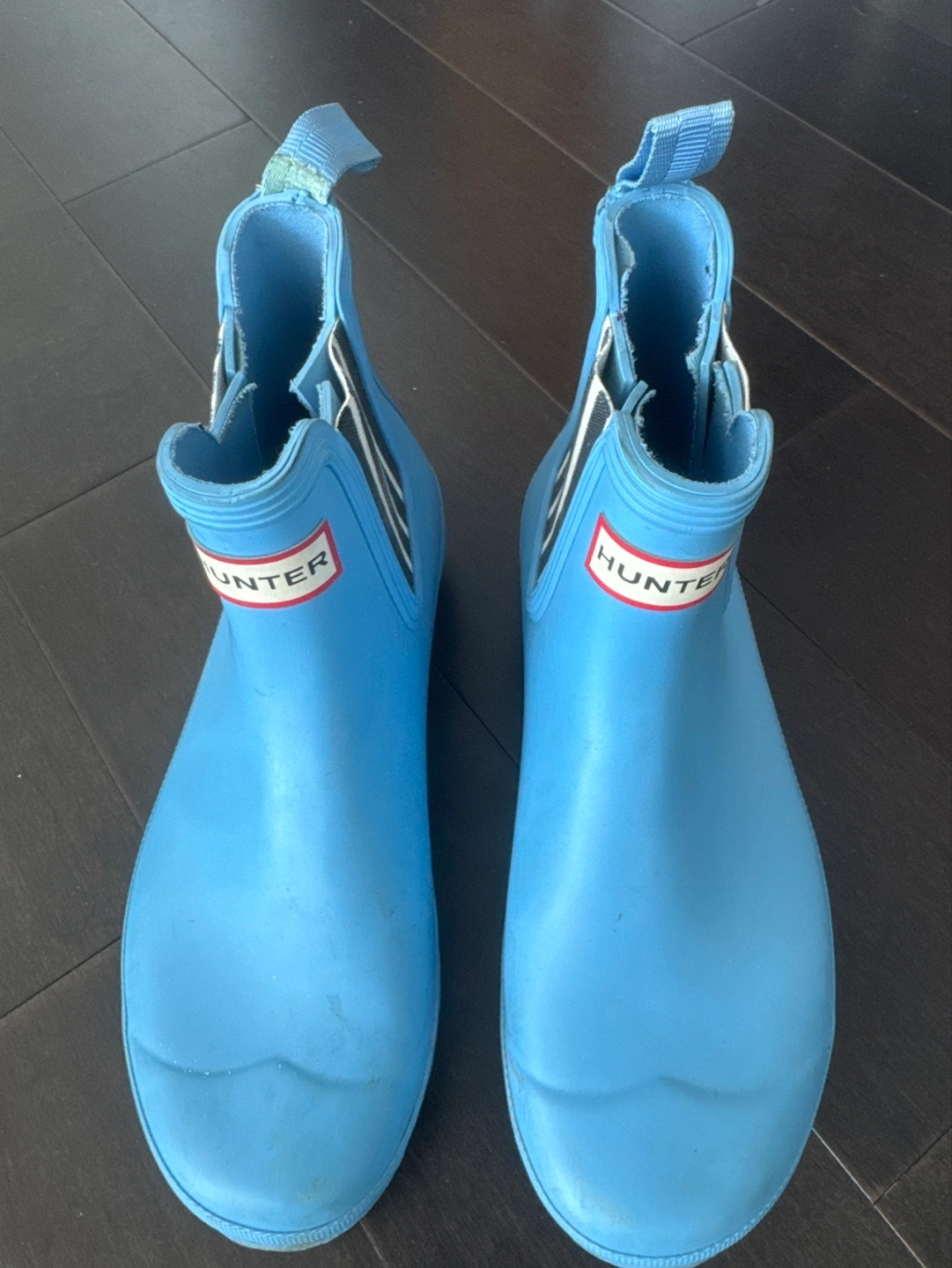 Pair of light blue Hunter brand Chelsea boots. Size 8. Worn once great condition.