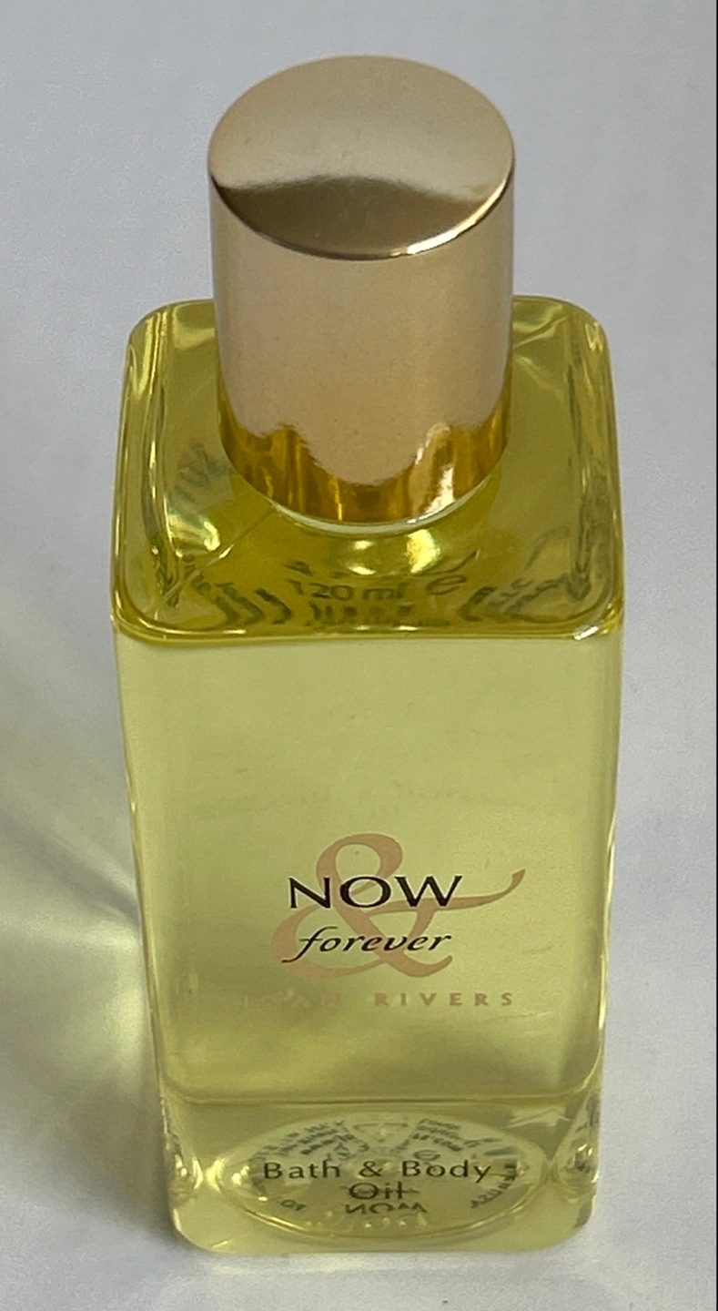 120ml bottle of Joan Rivers Now & Forever bath and body oil. Gold coloured cap. Unopened. Never used.