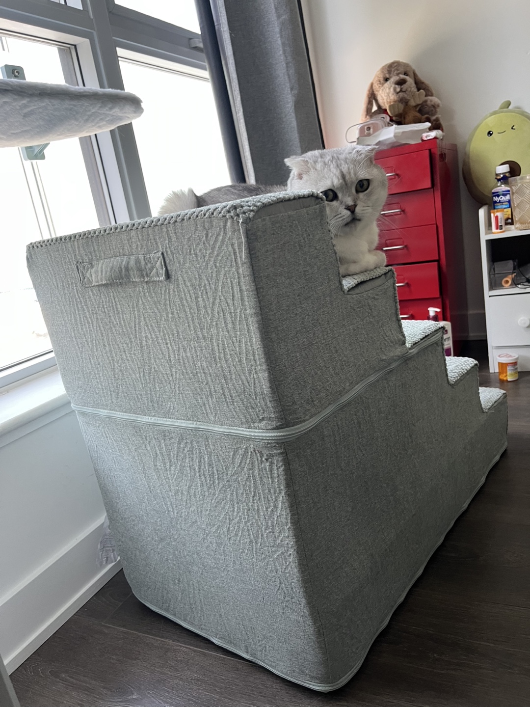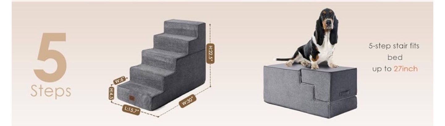 Barely used, dog won ’t use. Folds into a bed as well. Good for high bed or couches! 22.5" H, 5-Step Pet Stairs