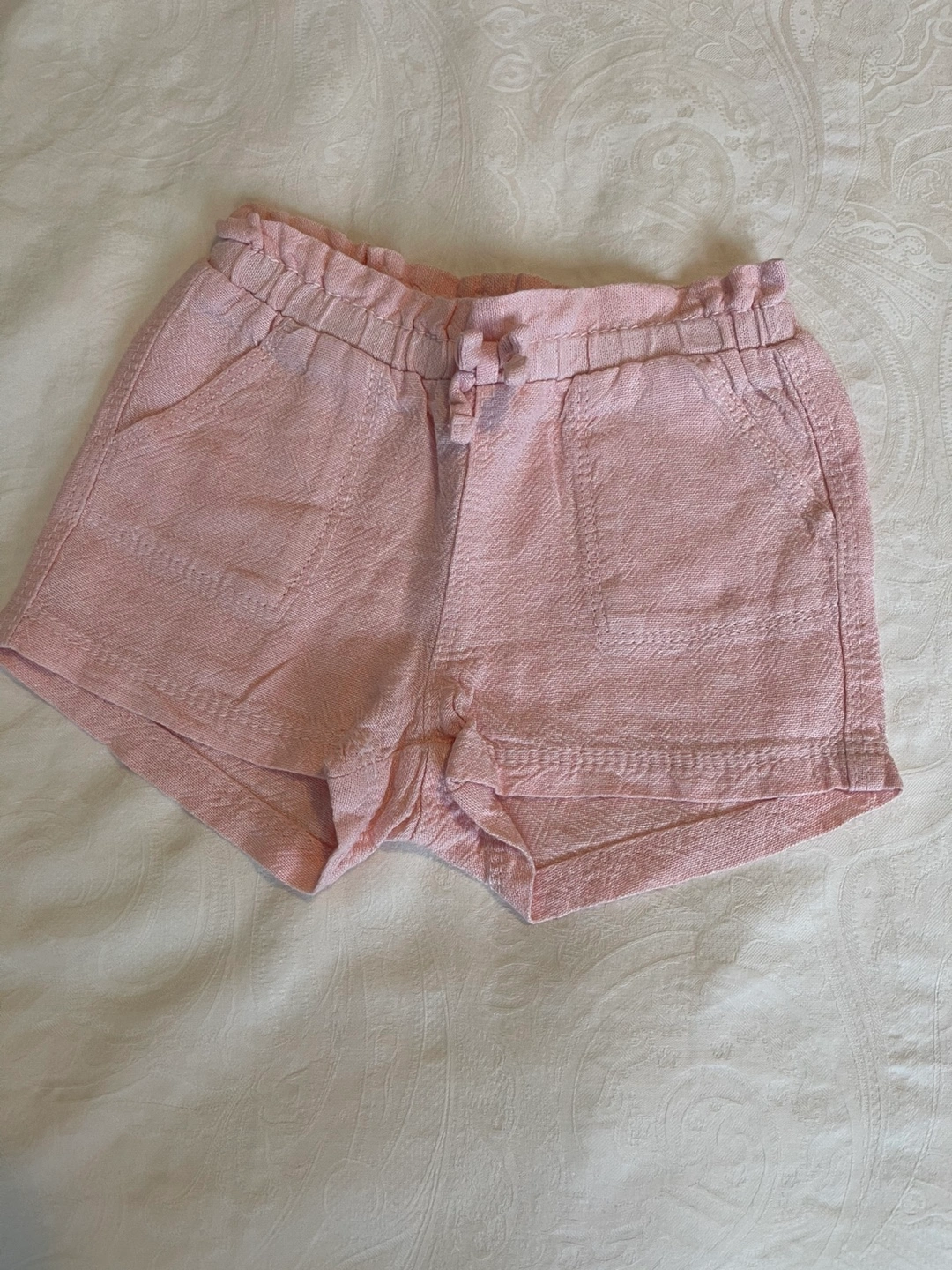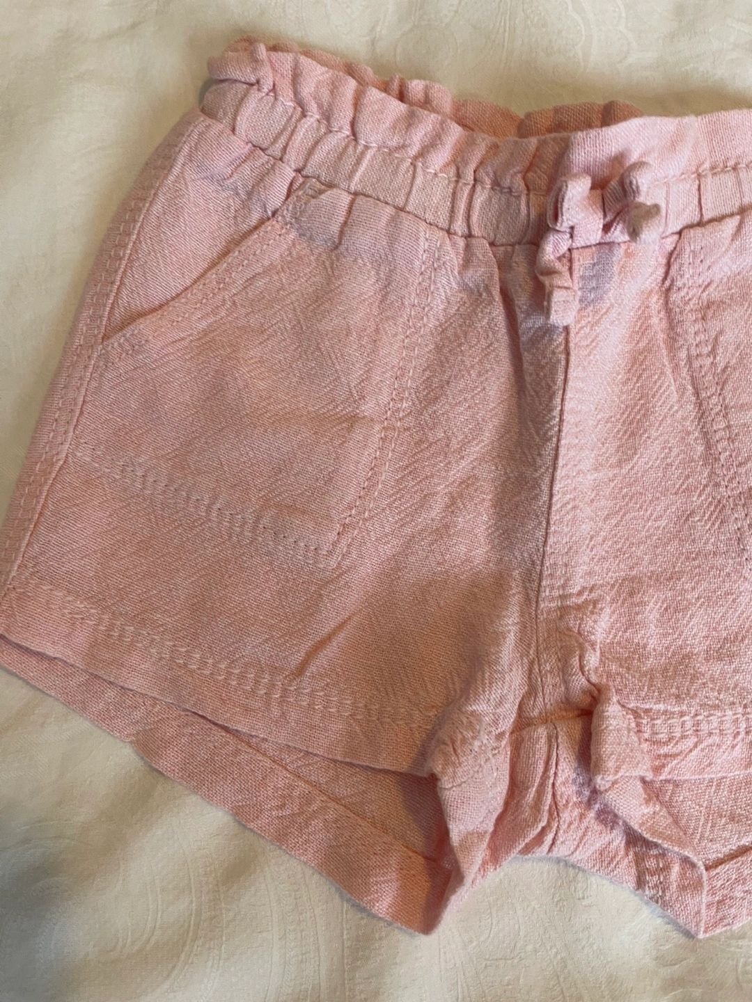 Washed and never used .Adorable pink shorts. Elastic waistband with drawstring. Features two front pockets. Lightweight fabric, perfect for summer.