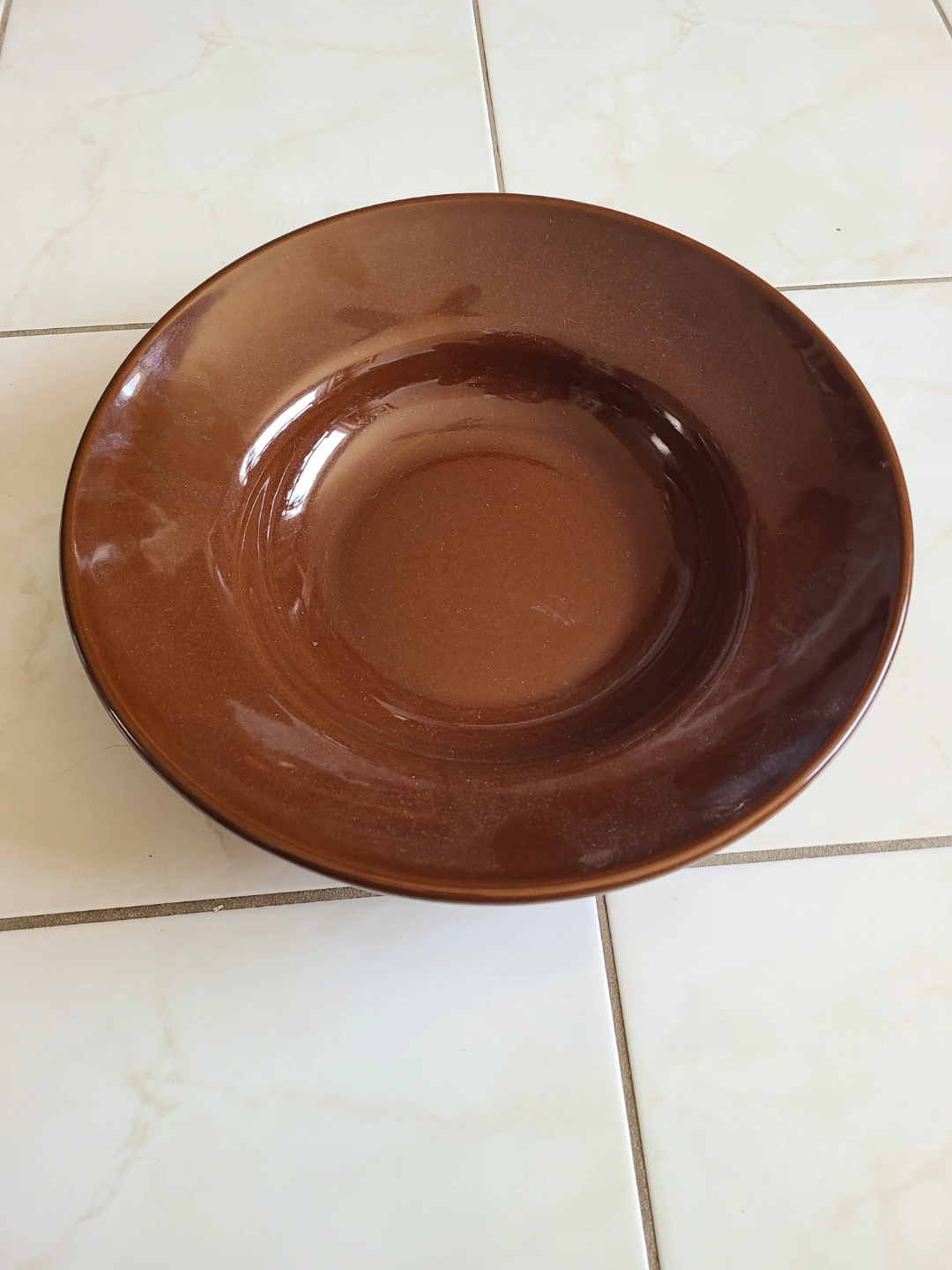 Large brown ceramic pasta bowl. Made in Portugal. Great for soups or pasta. No chips or cracks.