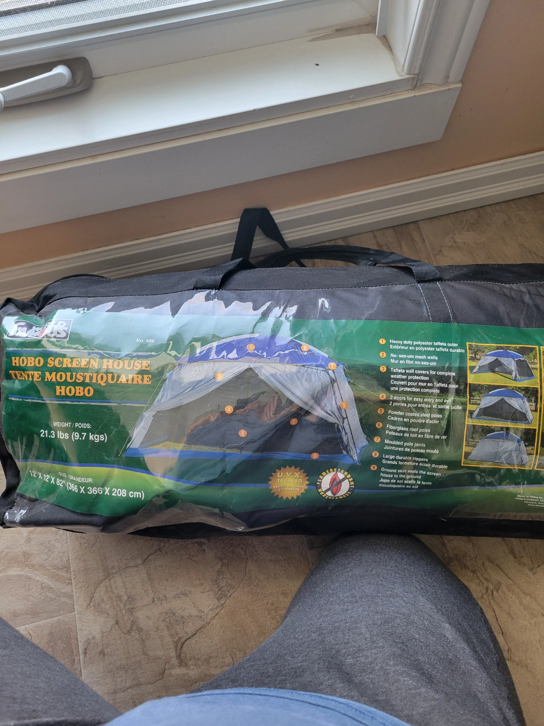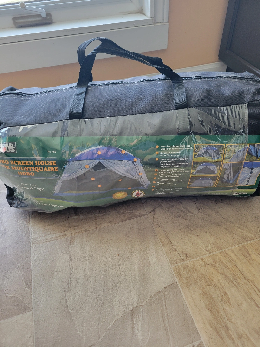 New in package. Heavy-duty polyester taffeta. No-see-um mesh walls. Taffeta wall covers for complete protection. Two doors for easy entry and exit. Powder-coated steel poles. Fiberglass roof poles. Moulded durable zippers. Large ground skirt. Measures 12' x 12' x 82'. Weighs 21.3 lbs.
