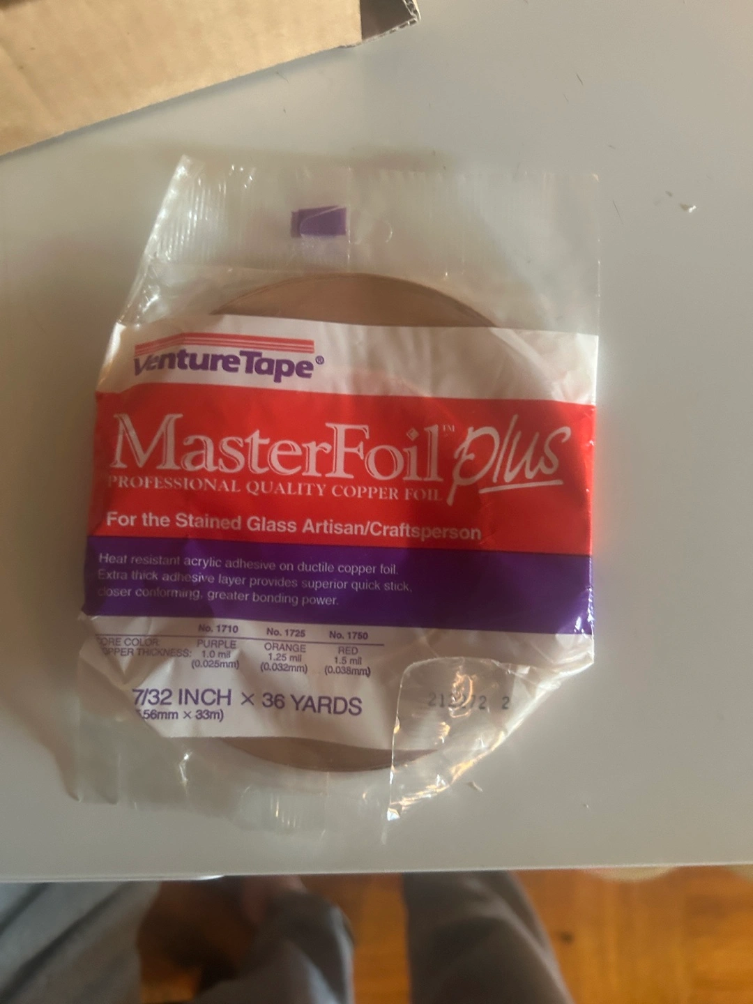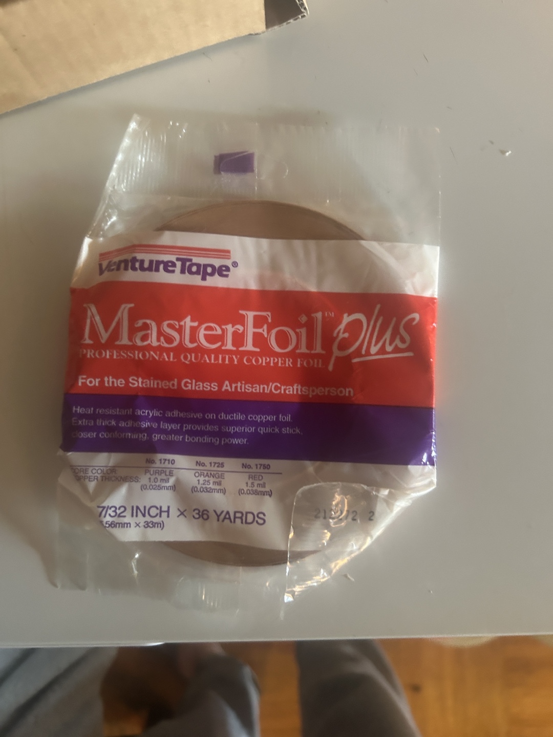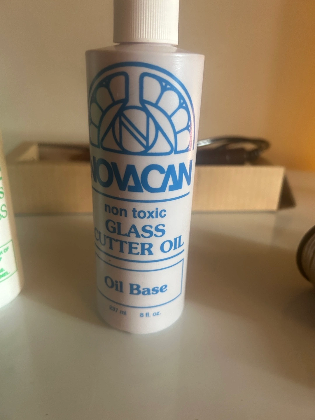 Variety of stained glass supplies. Includes glass cutter, copper foil tape, cutter oil,solder and soldering iron.Perfect for crafting projects. New and unused