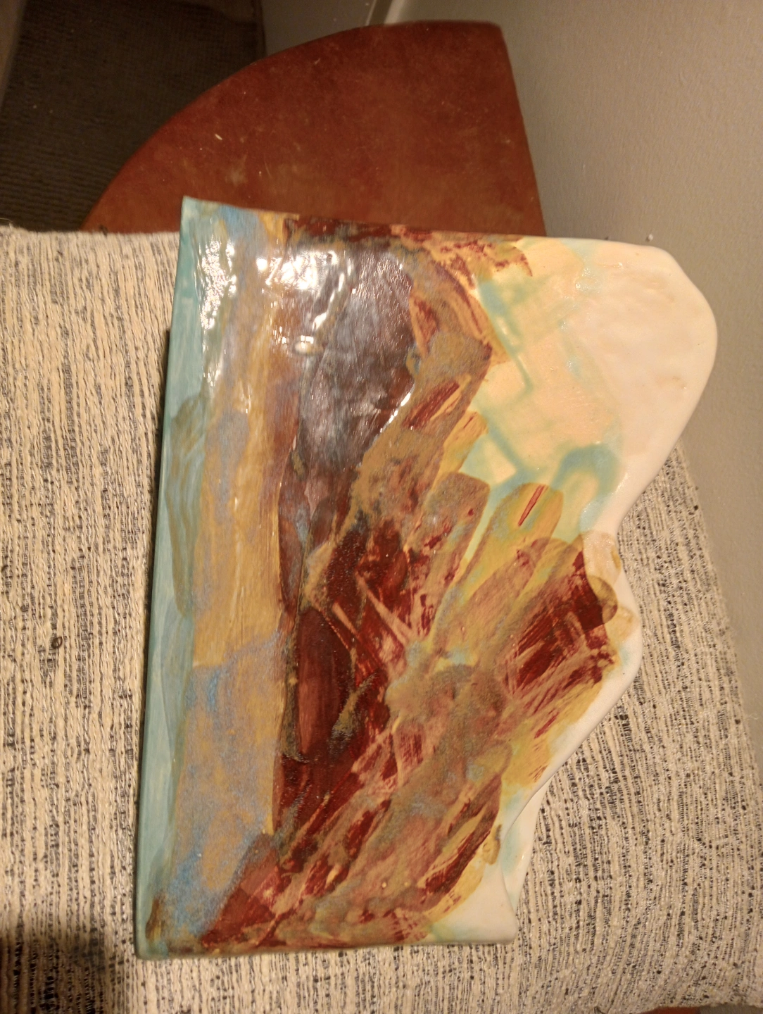 Beautiful ceramic piece, Irregular shape. Could be used as a vase or planter. Artisan-made.