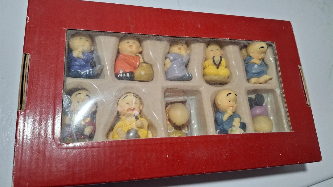 Ten small resin figurines in original packaging. Adorable little monks in various poses. Perfect for collectors or as unique décor. about an 1.5inch in size. have another set posted if interested