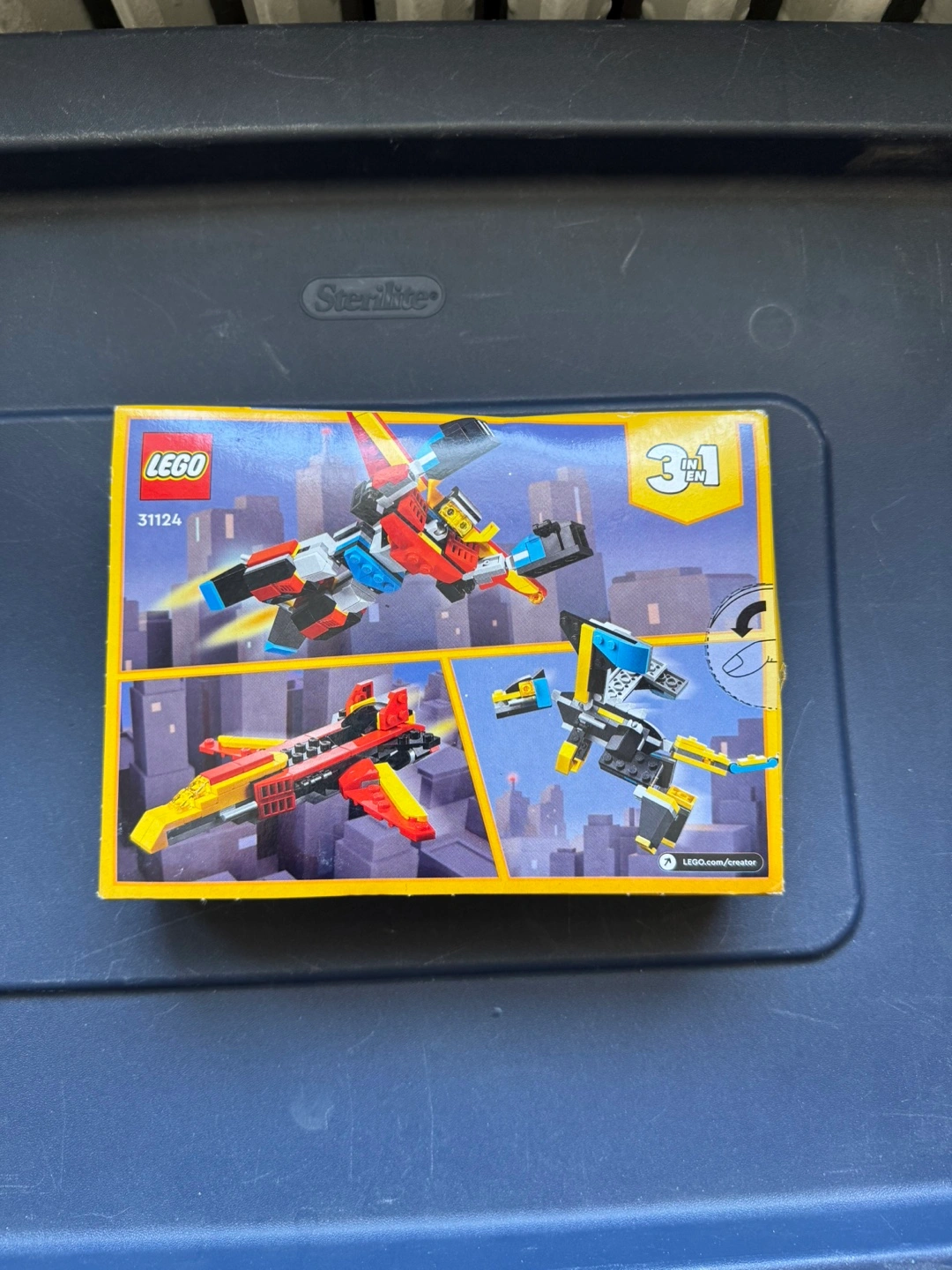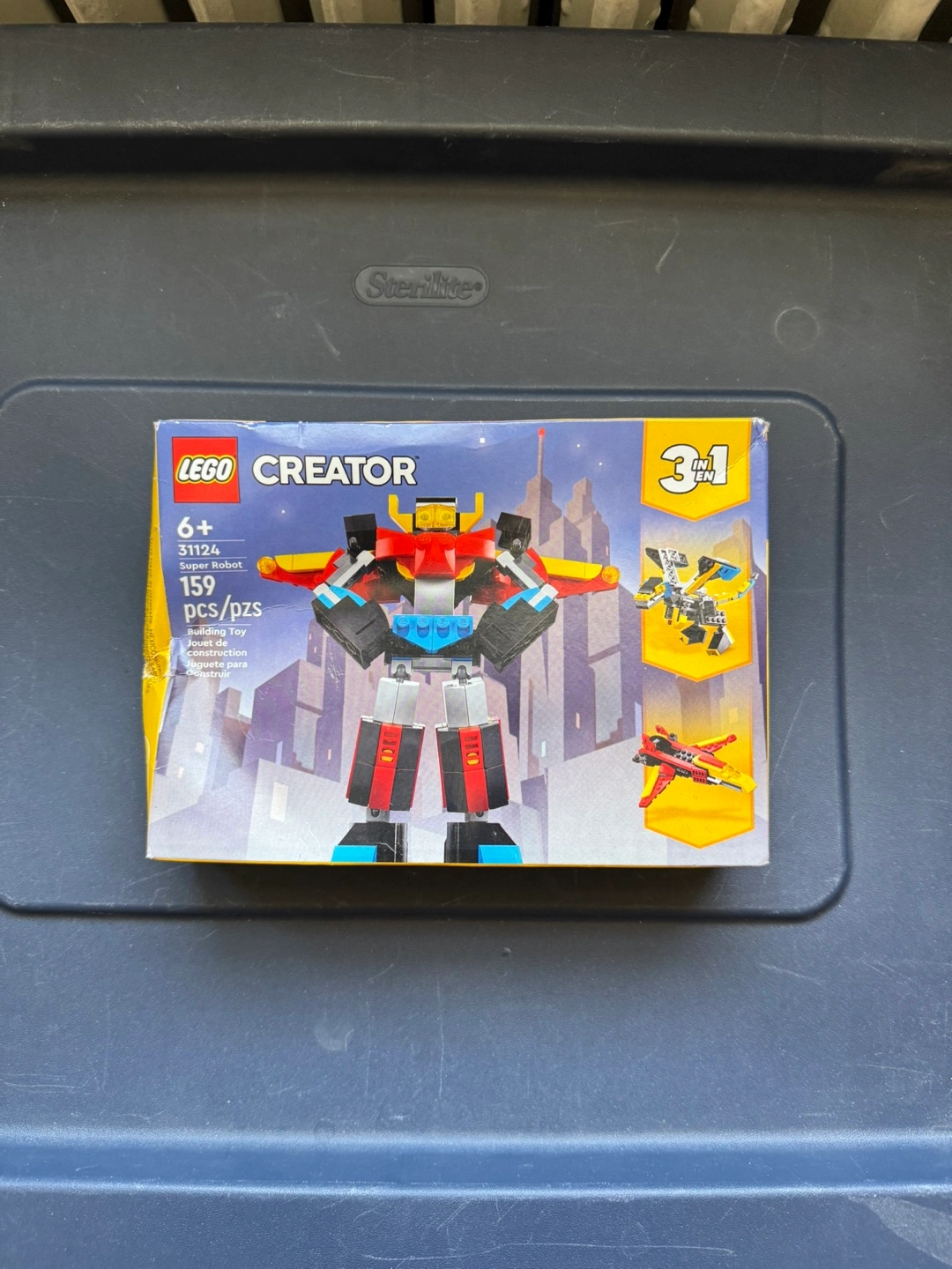 LEGO Creator 3in1 Super Robot building set. Number 31124. 159 pieces. Ages 6+. Three models to build: robot, jet, and dragon.