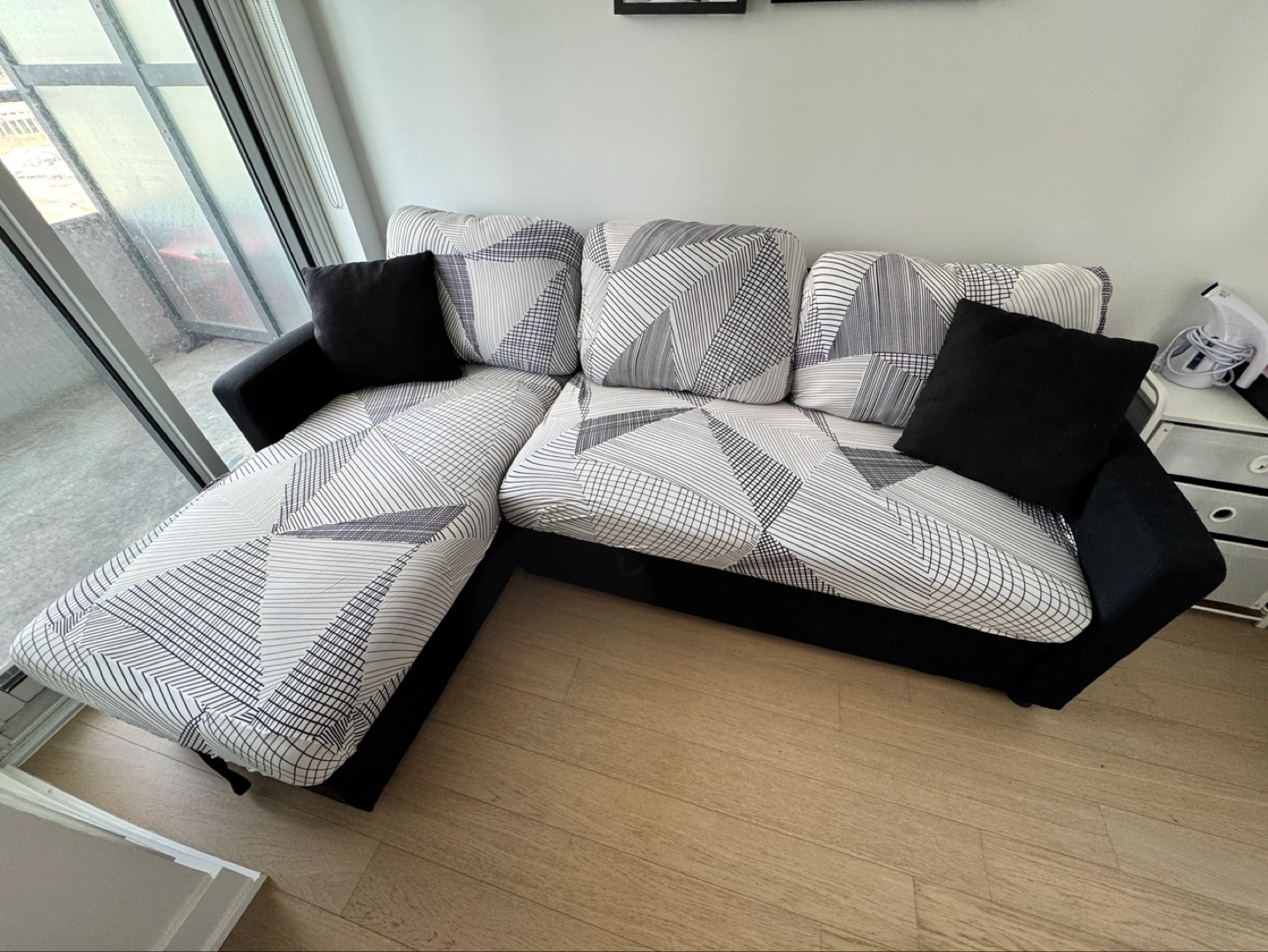 Black L-shaped Sectional Sofa Bed + Sofa covers set as a gift!