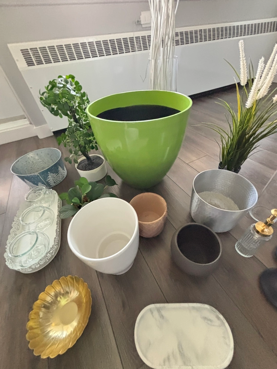 Assorted! Pots, Artificial plants, decorative,and candle holders