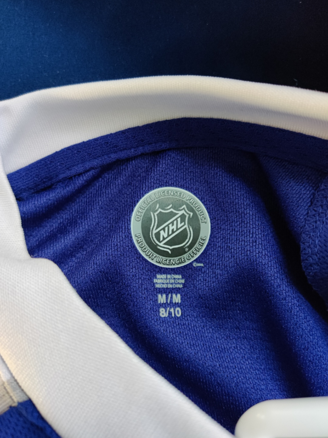 Never worn, because we're a family of cartoonists who do not know how to sports, children's size medium 8-10 Maple Leafs Hockey jersey.
