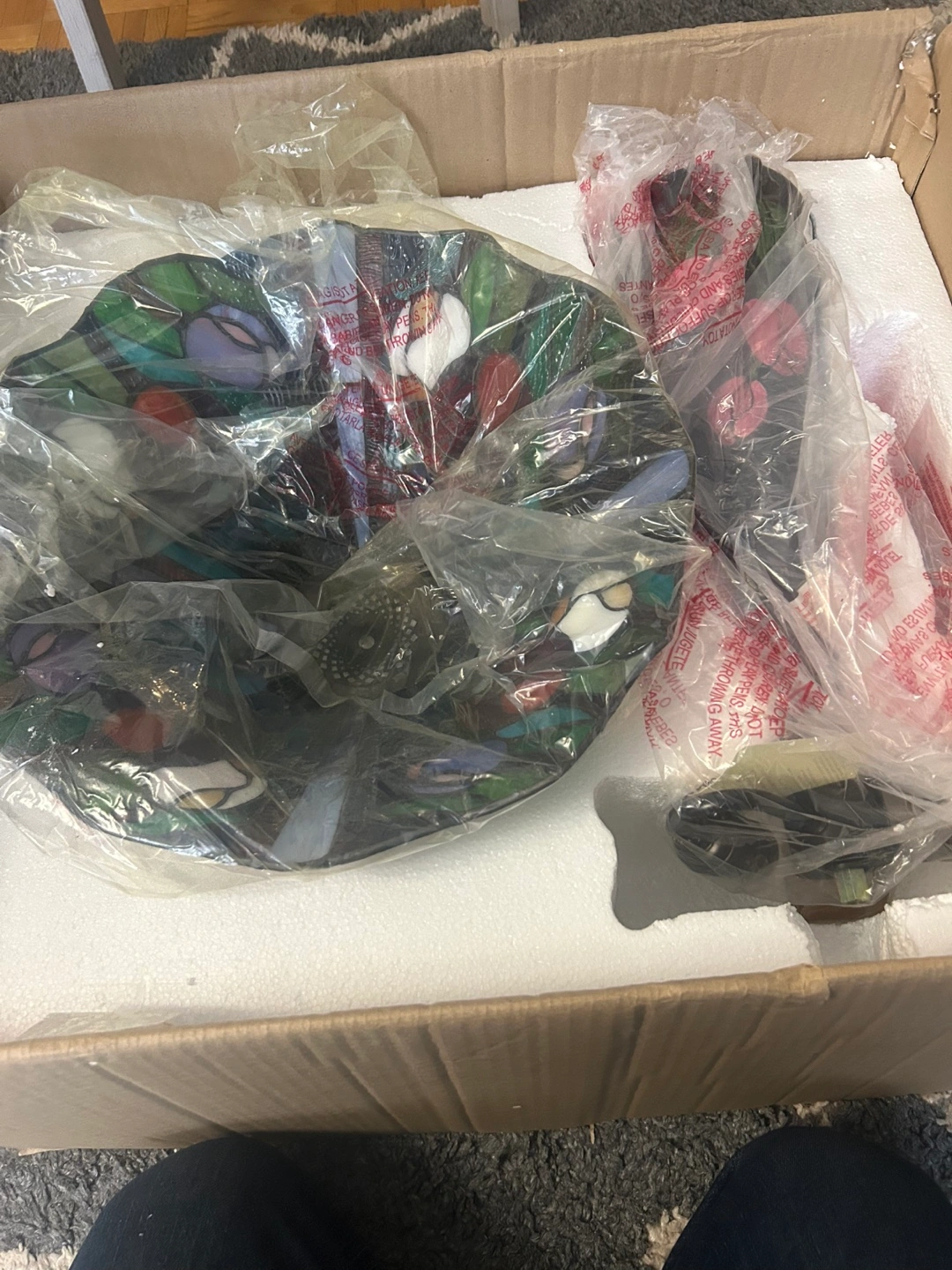Gorgeous stained glass table lamp. Limited edition, number 524 of 650. Includes certificate of authenticity. Features hand-painted tulips on the base. New in box, never used.