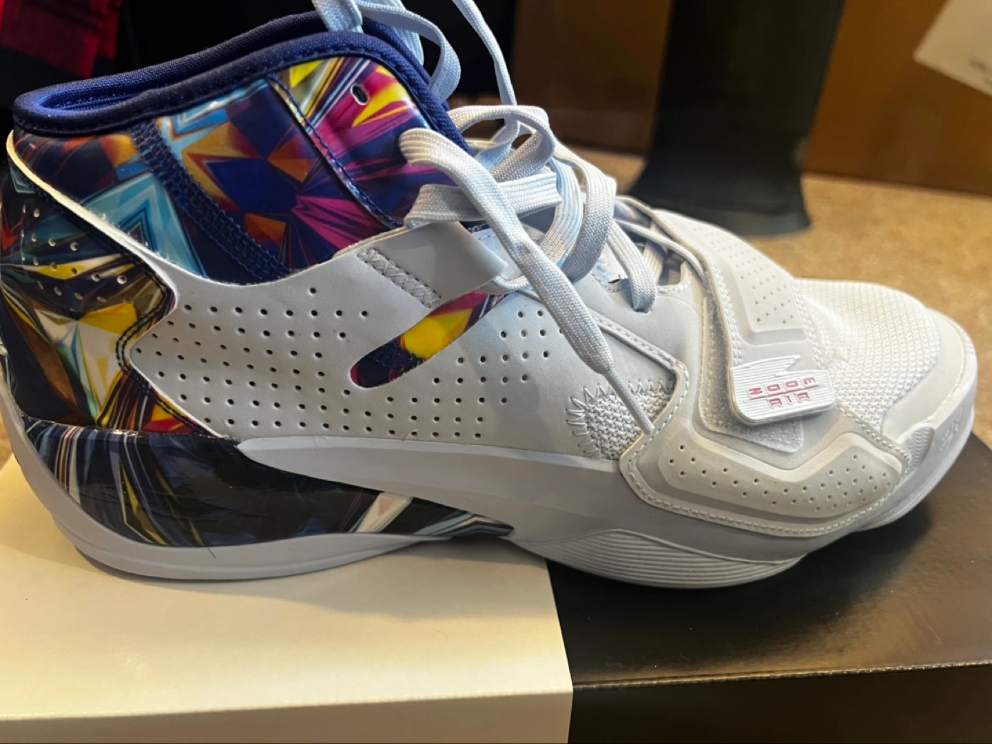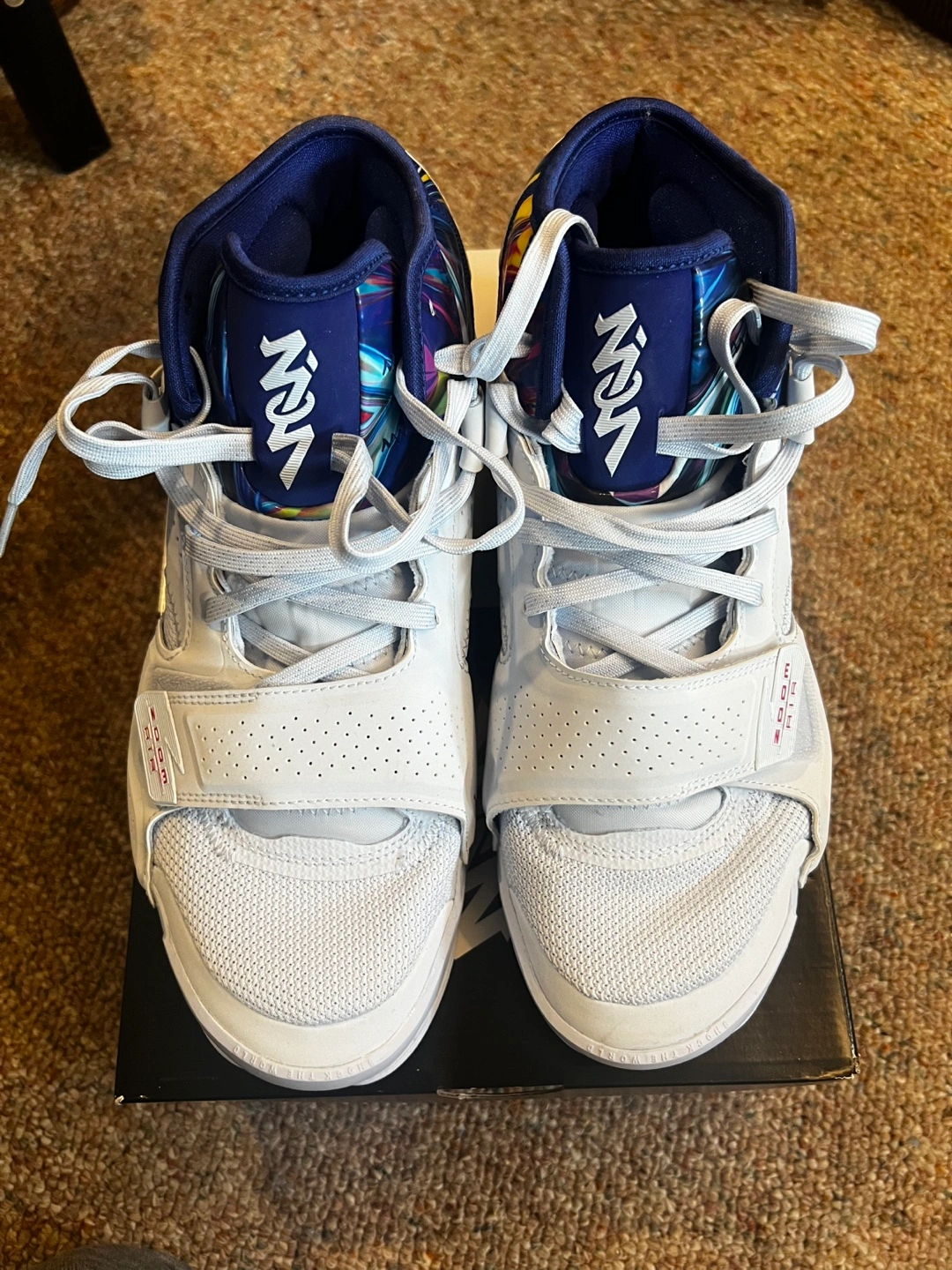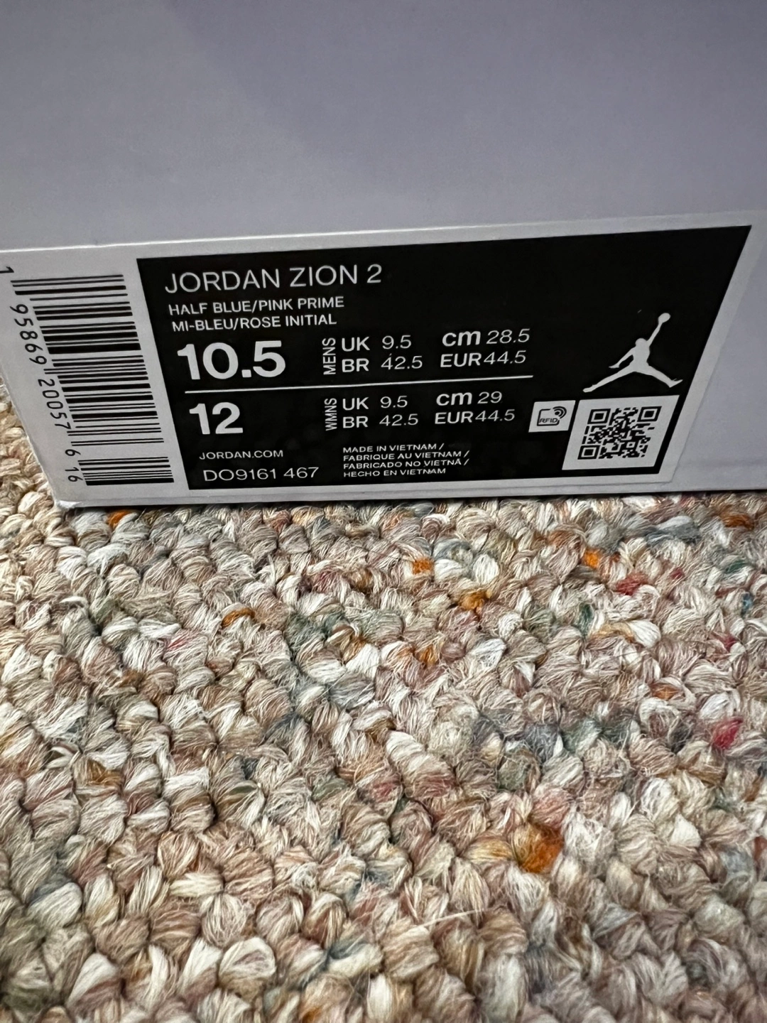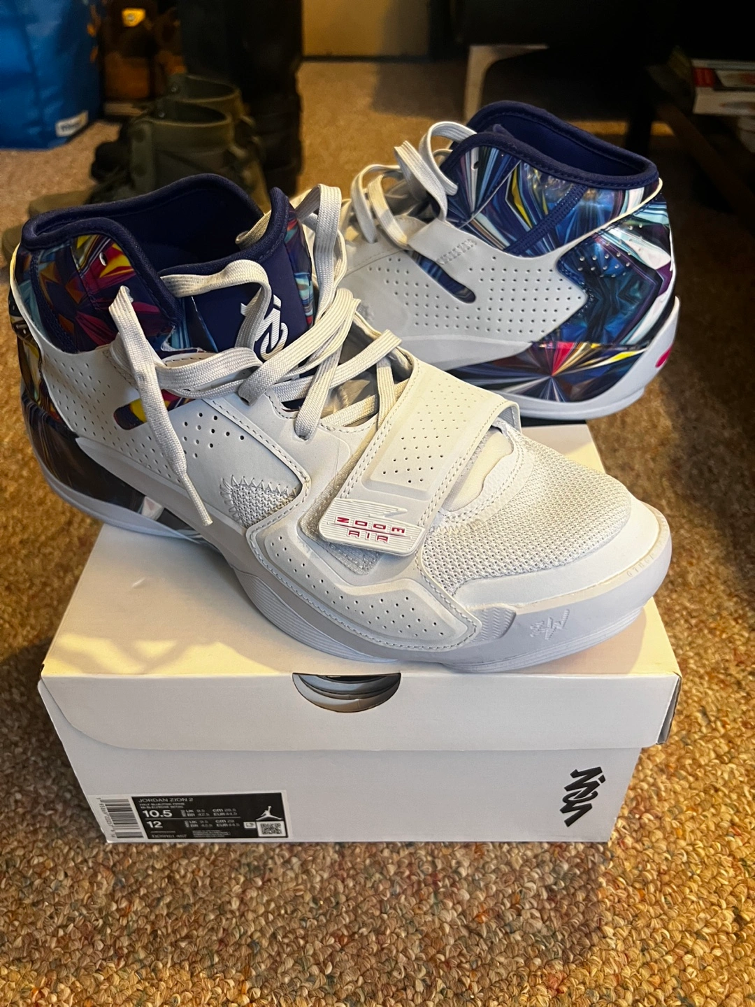 Men's Jordan Zion 2 basketball shoes. Size 10.5. Half blue/pink prime colourway. Multicoloured abstract design. Never worn and In original box.