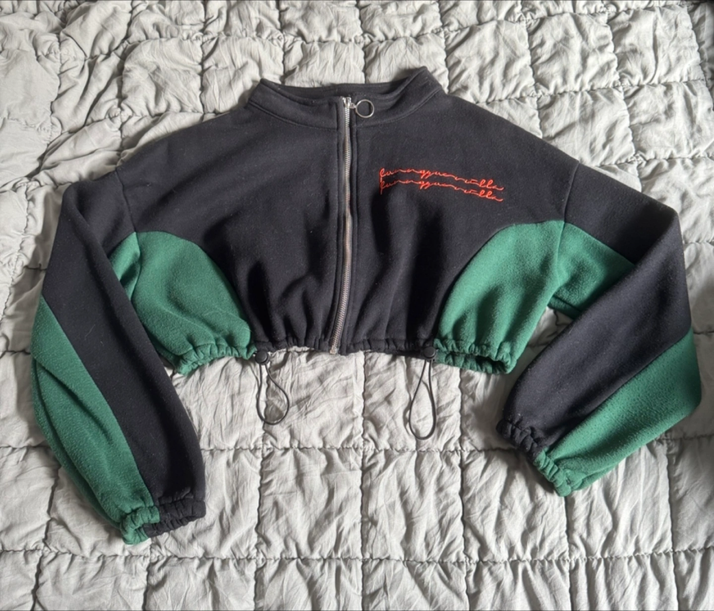 Cropped zip-up sweater, don’t remember where i got it from but it was like 7 years ago. I only wore it twice in those years lol.