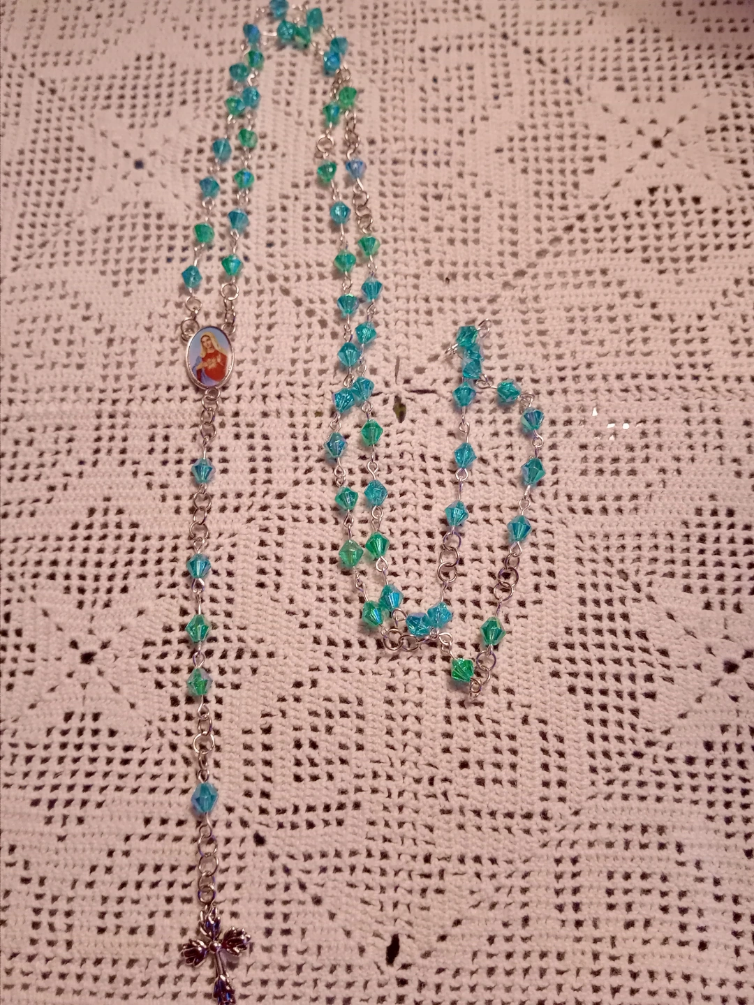 Two beautiful handmade beaded rosaries features faceted crystal beads and silver-toned metal accents.