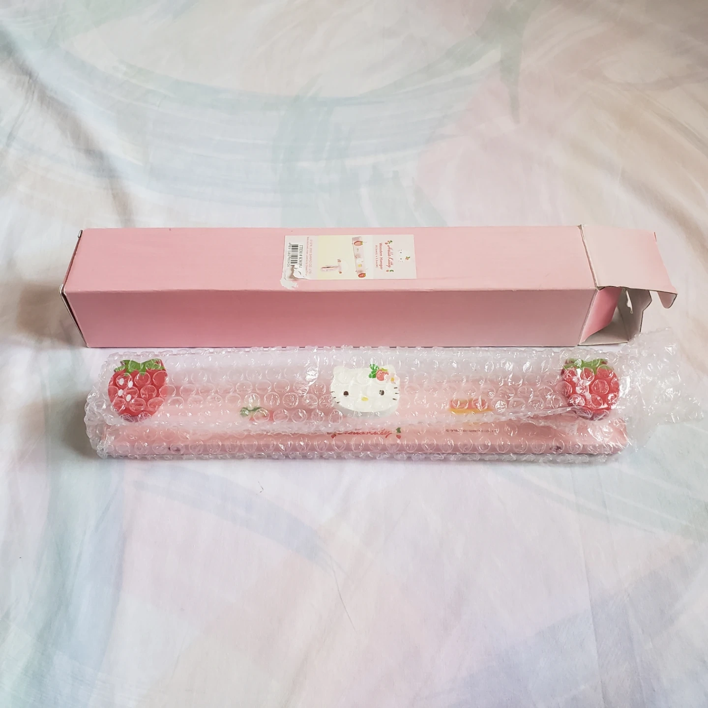 Wooden hanger features 3 slots to hang items in strawberries and Hello Kitty designs Size: 35.5 x 5.3cm New, in its original packaging Hoping the item finds a new home! From a smoke-free & pet-free home Cash only & exact change All sales are final; no refunds or reservations Pick-up only Location: Richmond Hill Serious inquries only; messaging only through Karrot Thank you for your interest & please check my 200+ listings for more!