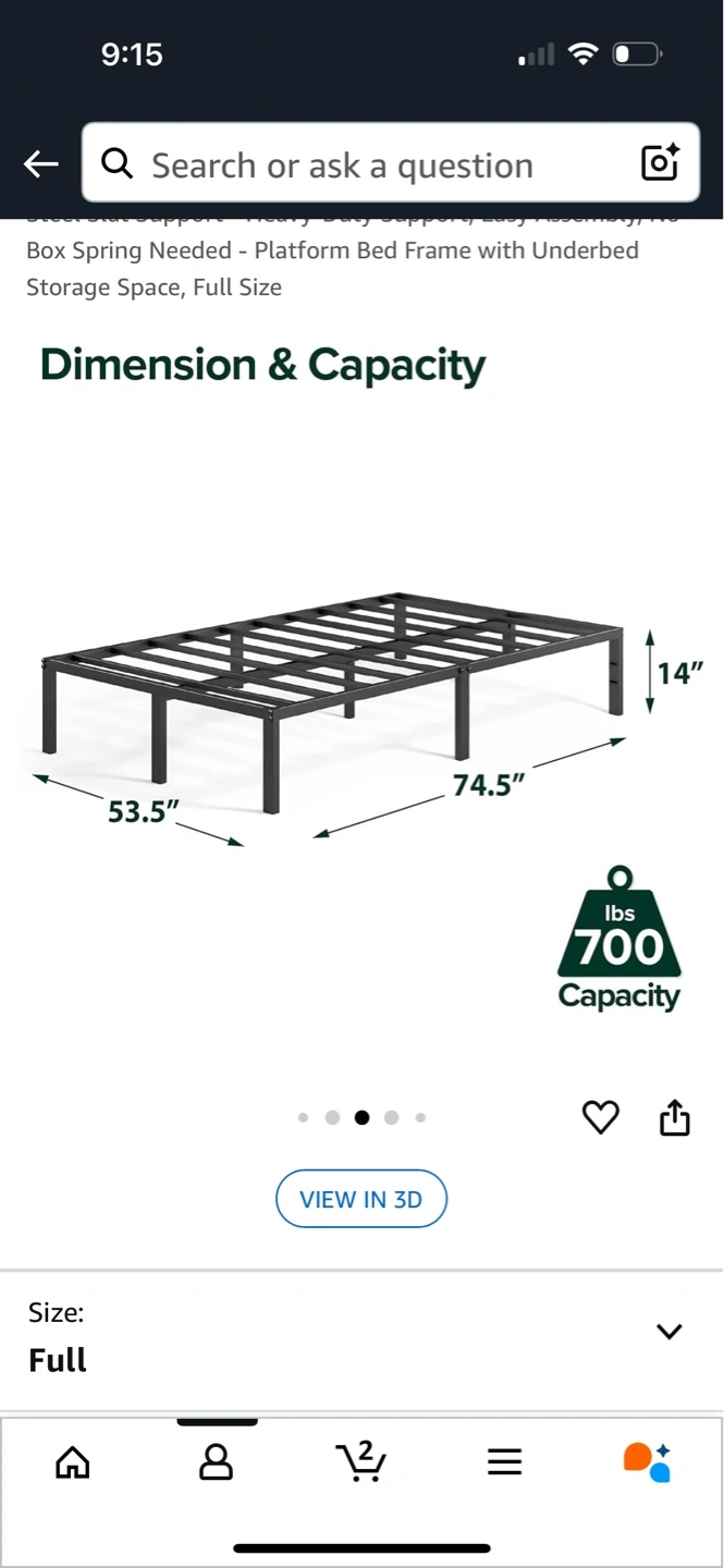 Full size platform bed frame. Metal construction. Used it for a year but am moving out and want to sell it by May 27th! Originally priced at $165! Have the mattress too but it has some stains on it. Can give the mattress for a bundle deal!