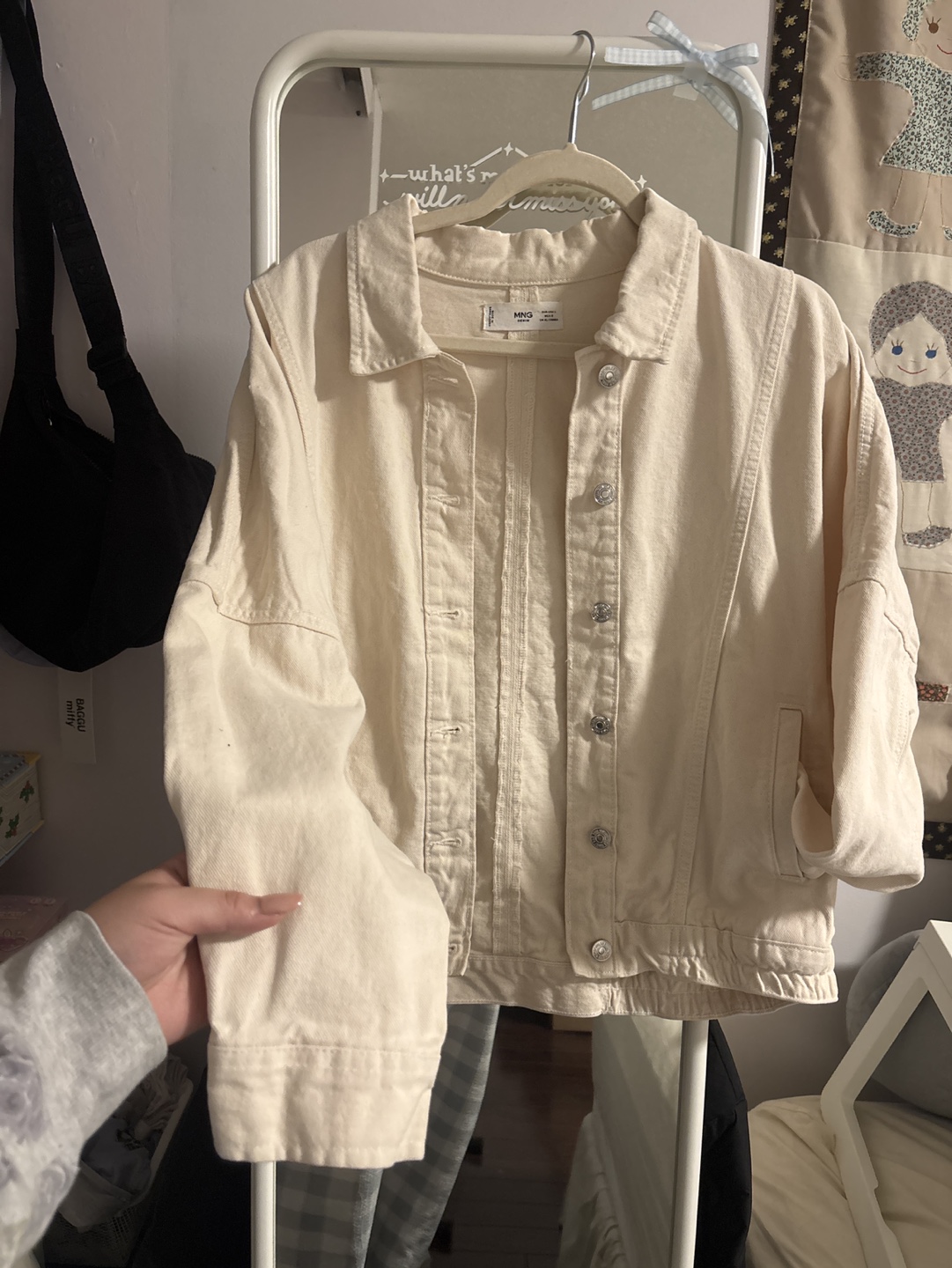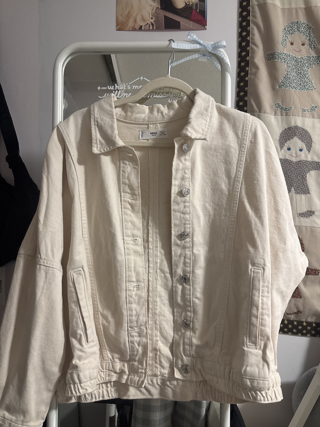 Cute cream coloured denim jacket from Mango. Long sleeves, button closure. Good condition.
