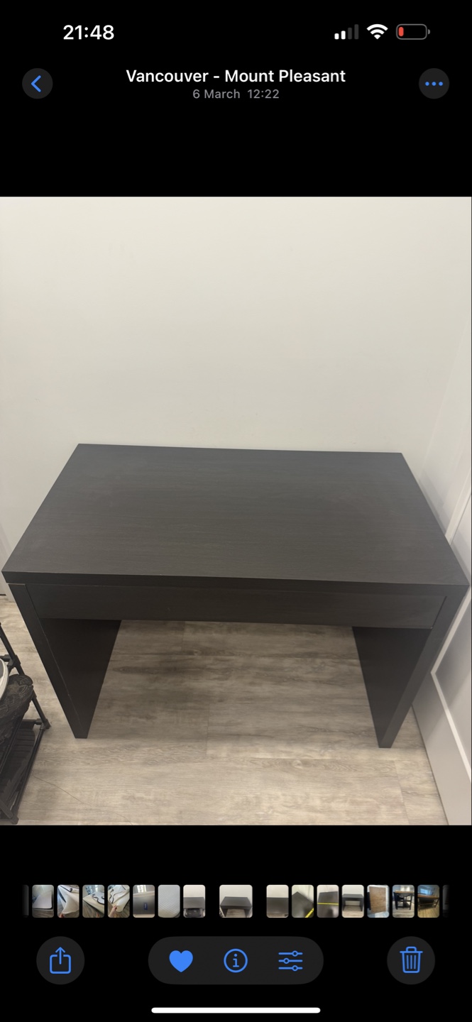 Buy & SellDeskDesk$50Desk is dismantled Approximately 22 width x 39 length Color black Pick up olympic villageWHERE TO MEETCheck LocationView MapSELLERLiaMount Pleasant11311 reviews1 chats·0 favorites·15 viewsSEND CHAT TO SELLERHi Lia! I’m interested in your listing.Hi Lia! I’m interested in your listing.Get the Karrot app to chatSign In to chat