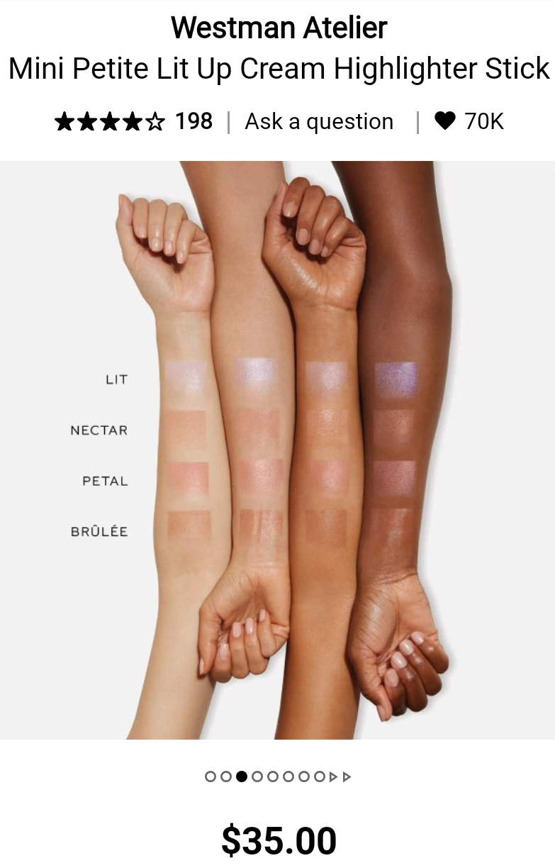 A quick, easy, hydrating cream highlighting stick that melts into cheeks, lids, and lips.