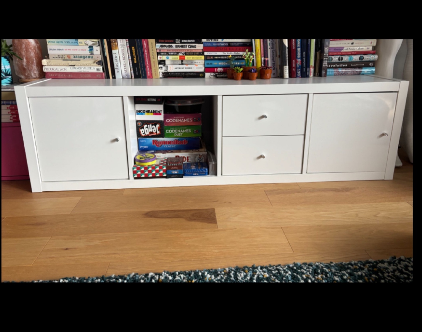 Buy & SellIKEA Kallax Storage Unit / Shelf with 2 Doors + 2 DrawersIKEA Kallax Storage Unit / Shelf with 2 Doors + 2 Drawers$55Depth = 15.5in. Width = 57.5in. Height = 16.25in. Available for pick up as of May 5th.WHERE TO MEET10 Morrison St.View MapSELLERverifiedJeremy FFashion District23217 reviews1 chats·1 favorites·147 viewsSEND CHAT TO SELLERHi Jeremy F! I’m interested in your listing.Hi Jeremy F! I’m interested in your listing.Get the Karrot app to chatSign In to chat