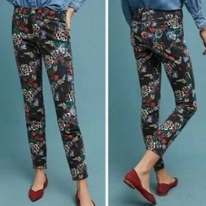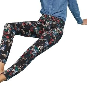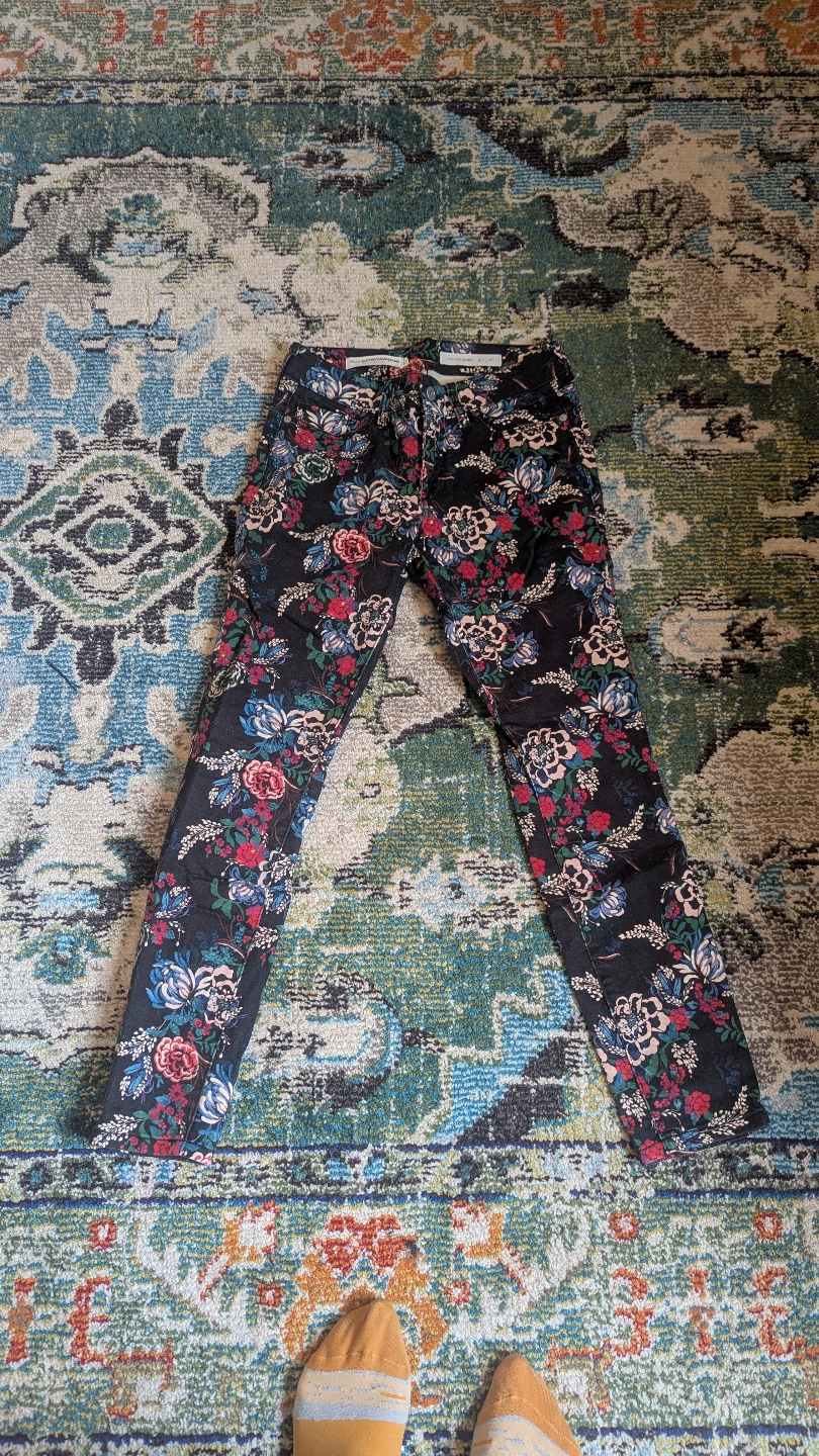 Floral print skinny jeans. Dark background with colourful flowers. Excellent condition.