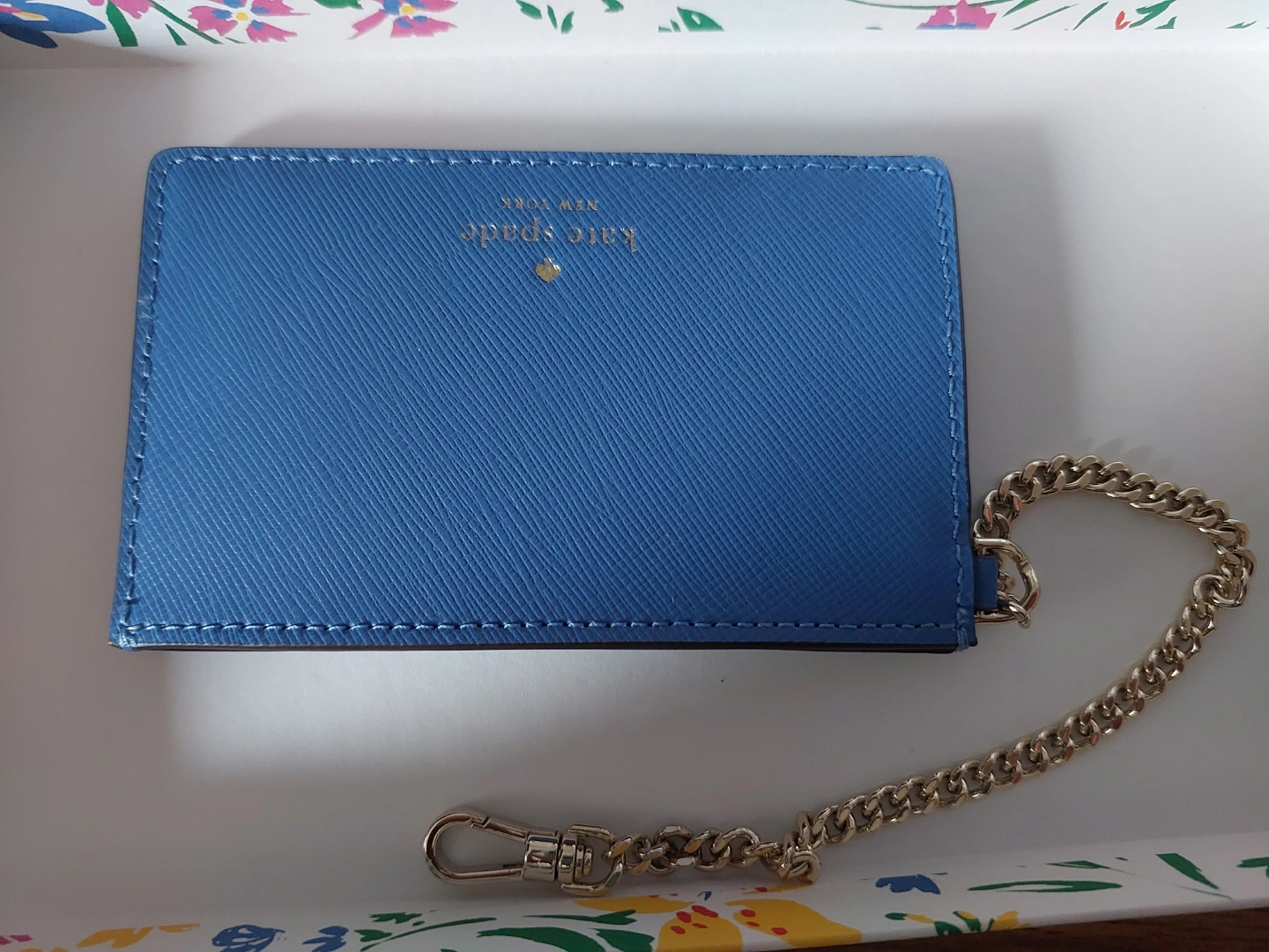 Light blue leather card holder.