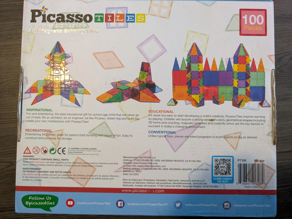PicassoTiles 100 Piece 3-D Magnetic Building Tiles