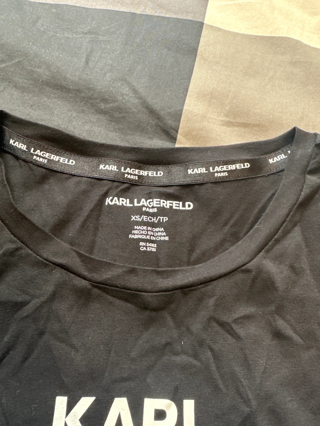84Black Karl Lagerfeld t-shirt. Features Eiffel Tower design with gold sequins. Size XS. Brand new. Never worn. Tags still attached.