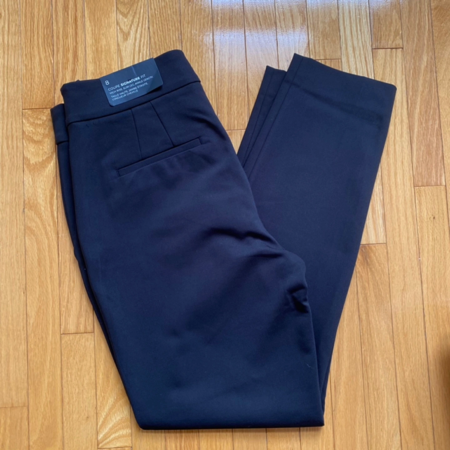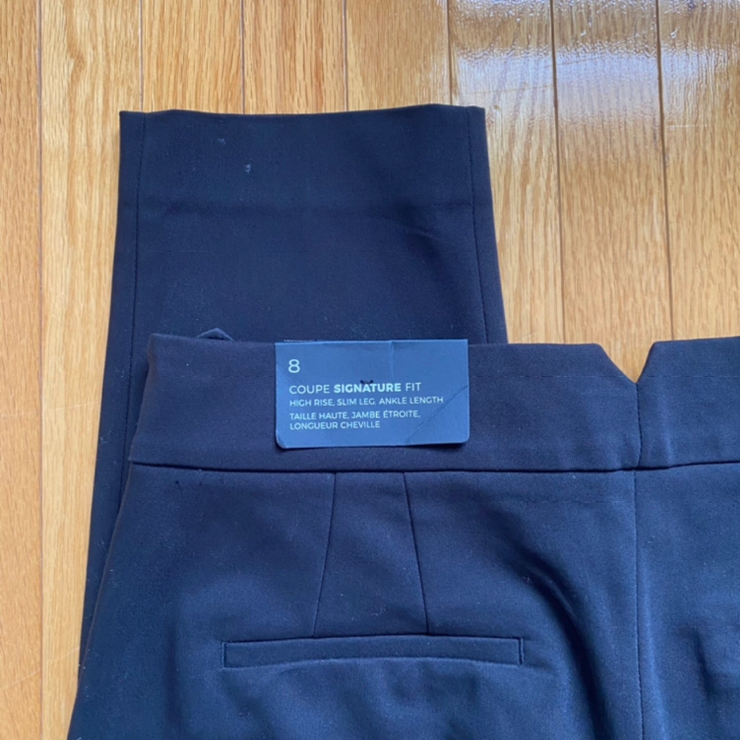 Signature fit, high rise, slim leg, ankle length.