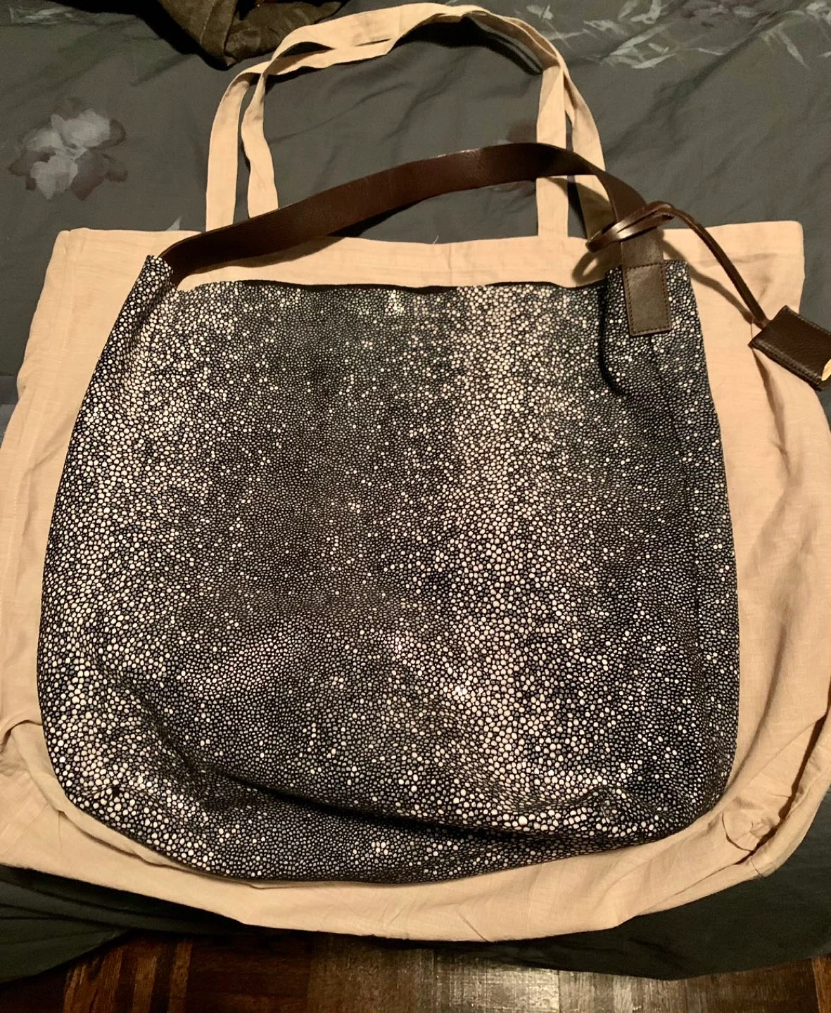 This beautiful bag was purchased at Snap Dragon Boutique on Mount Pleasant for $700. It is in excellent condition and has been used a handful of times. The bag has a beautiful sparkly pattern and is constructed of leather. It’s got a blue background, brown leather handles, a tag with designer’s name and a dust bag to keep it in good condition when not in use. The price is negotiable. It’s beautiful and I’d love someone to enjoy it!