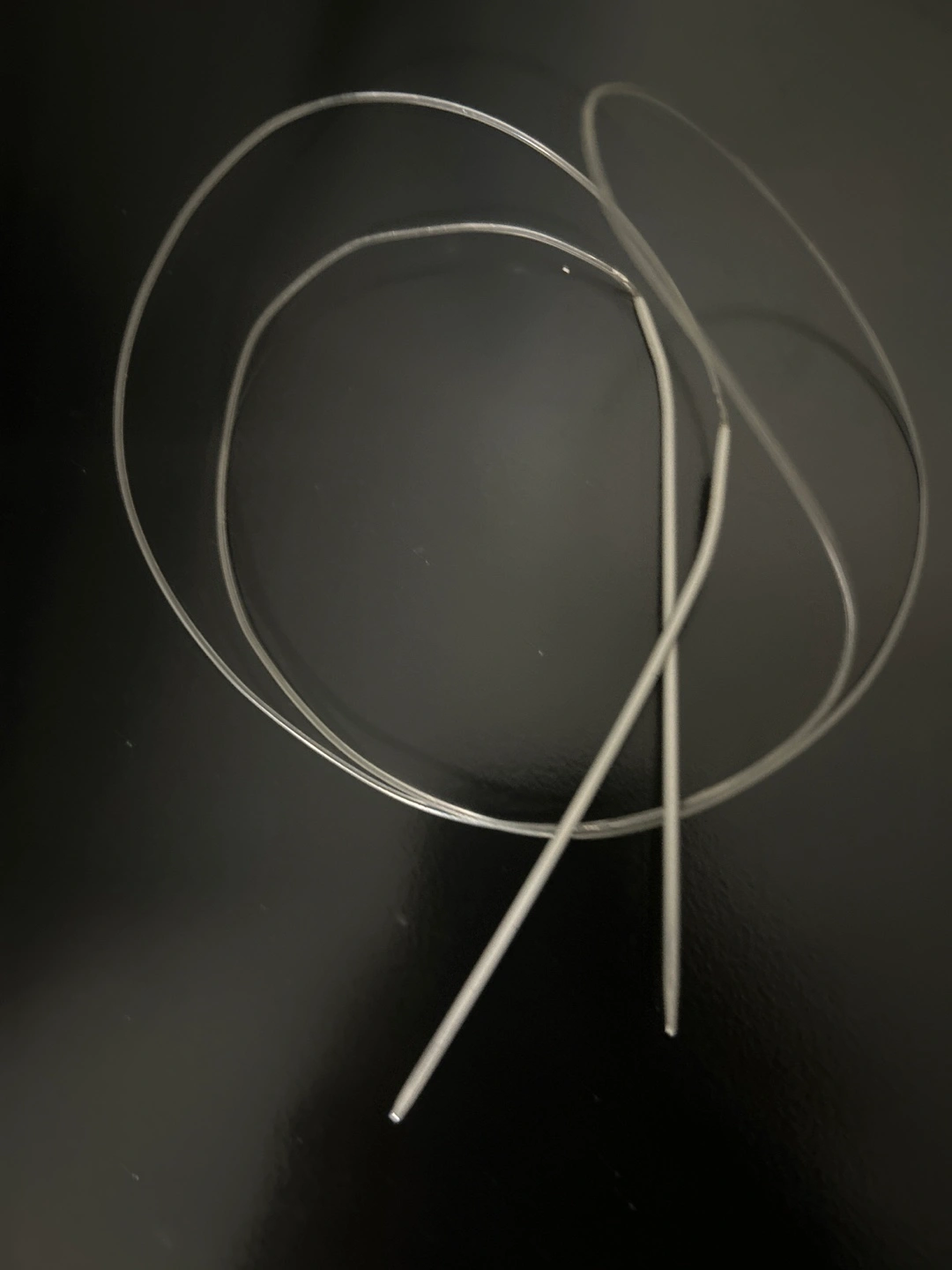 Long circular knitting needles. Metal. Appear to be used but in good condition.