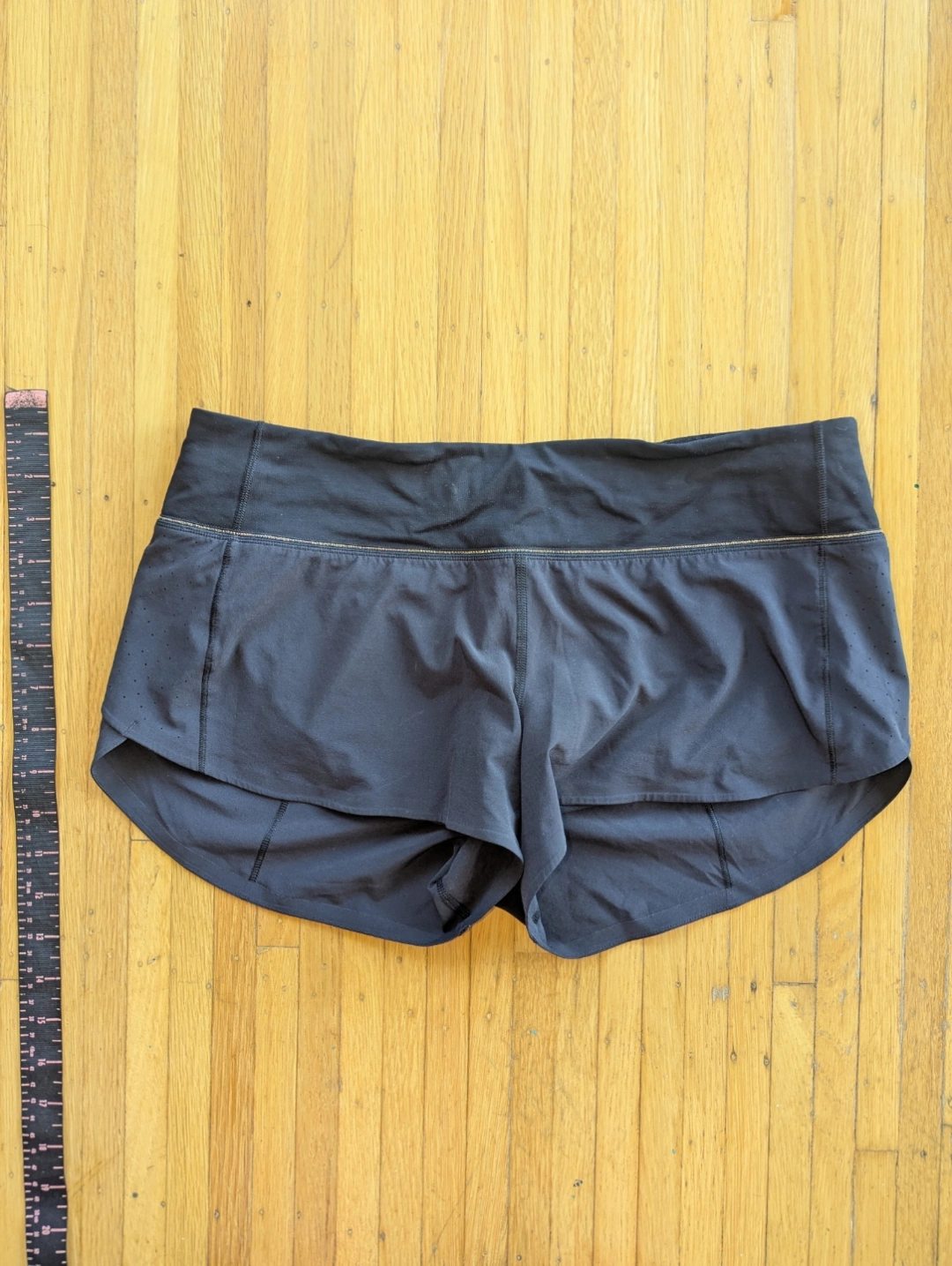 Black Lululemon Speed shorts. Size 6. Built-in liner. Back zipper pocket. Excellent for running or training. Excellent condition.