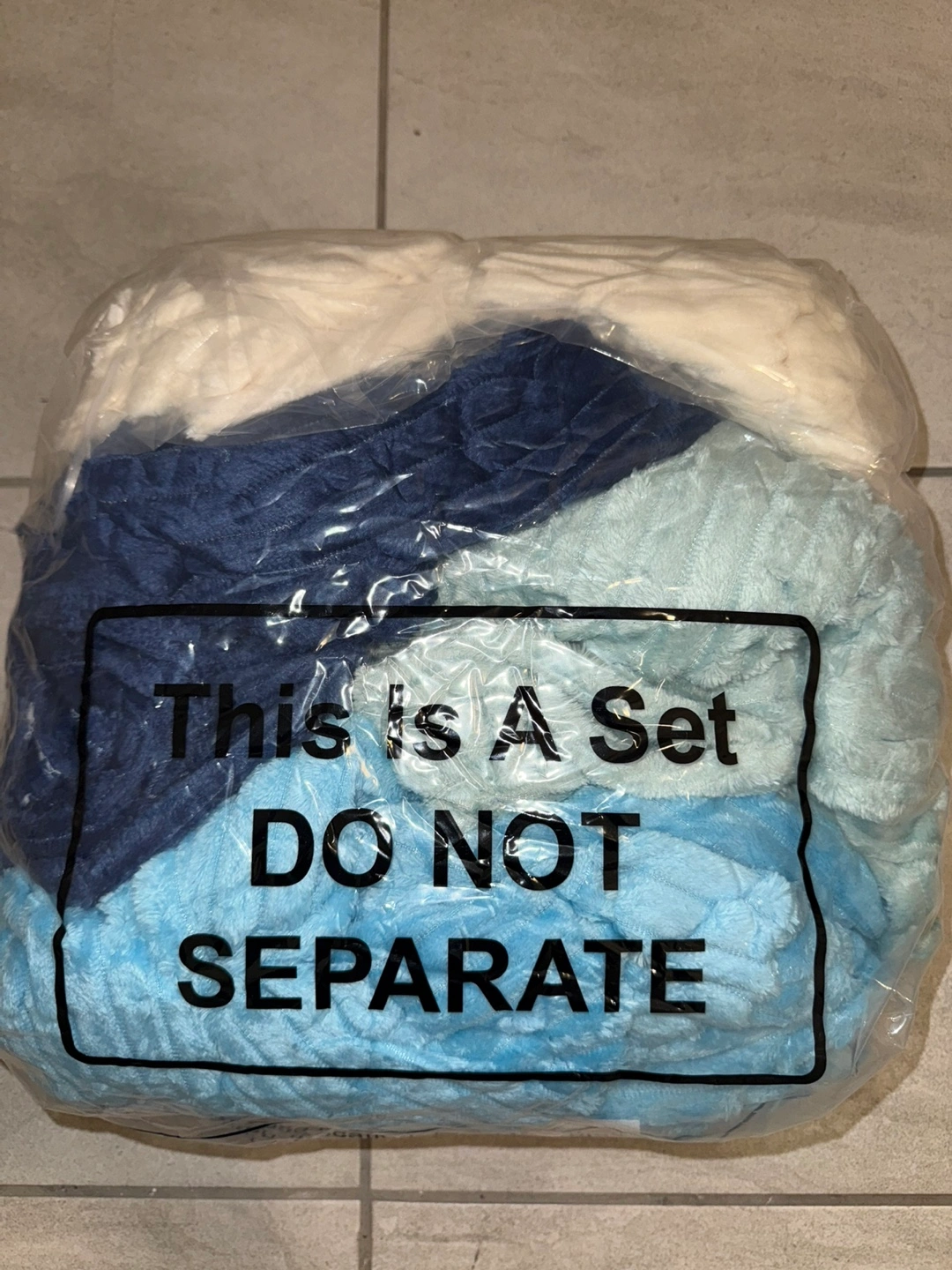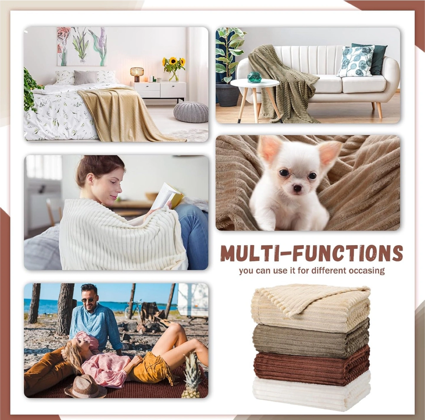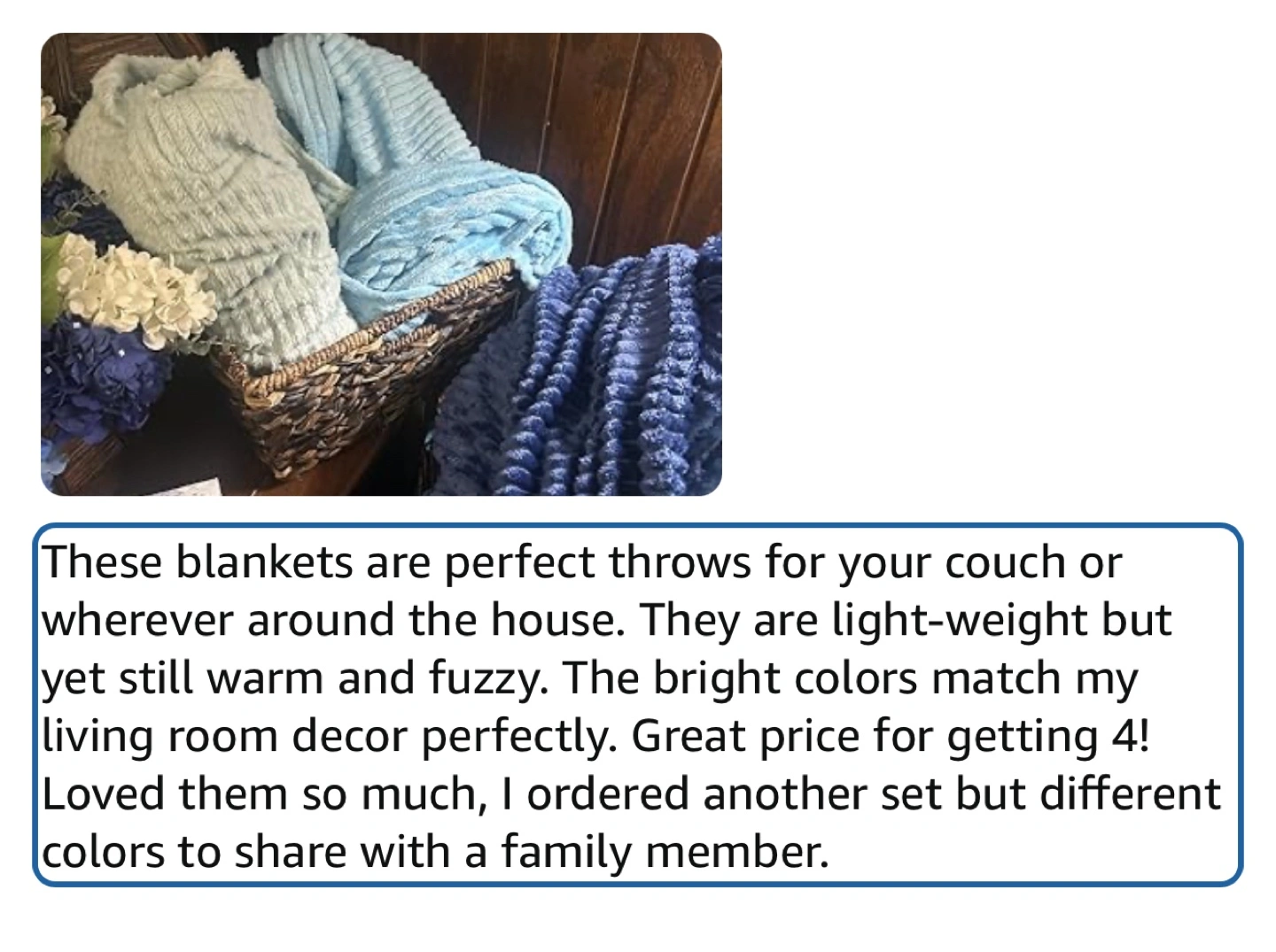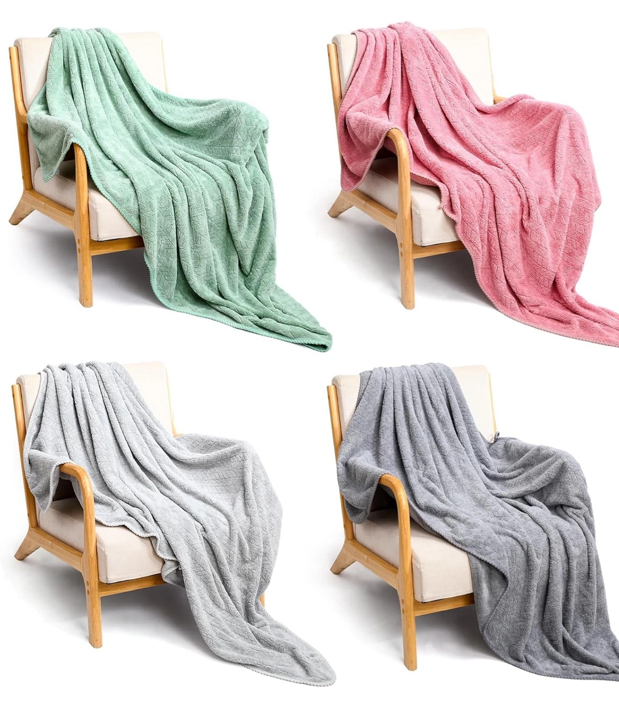 261Set of four plush throw blankets. Soft, warm, and cozy. Machine washable. Perfect for couches, beds, or snuggling up on the floor. Lightweight but warm. Color: Gradient blue