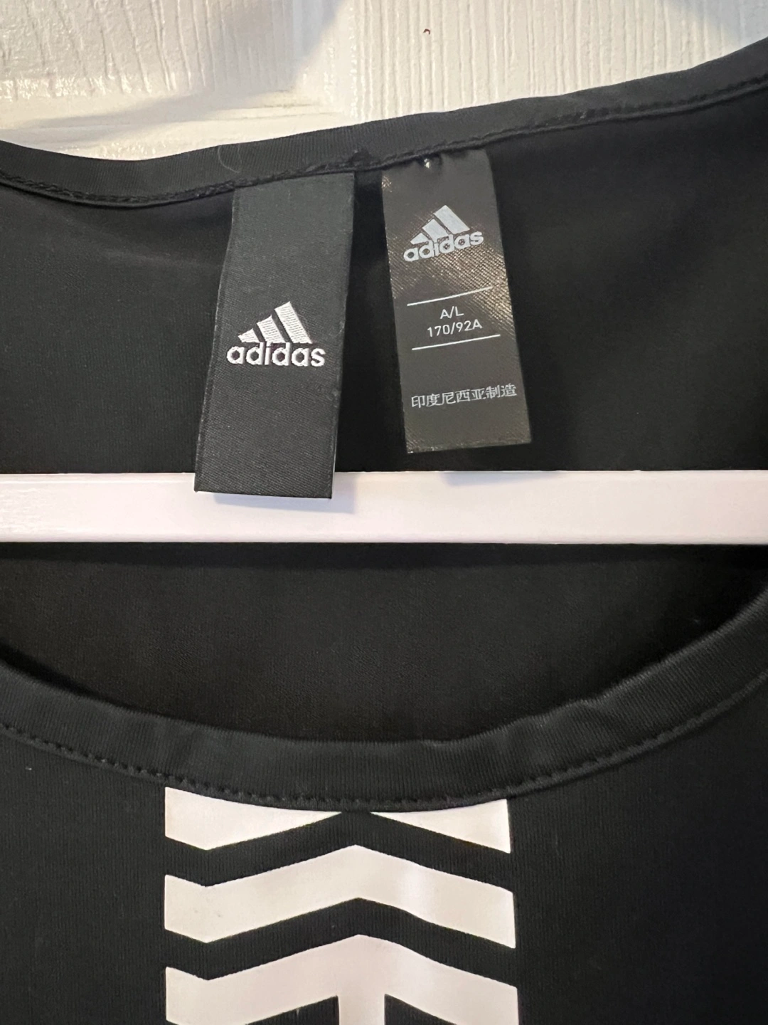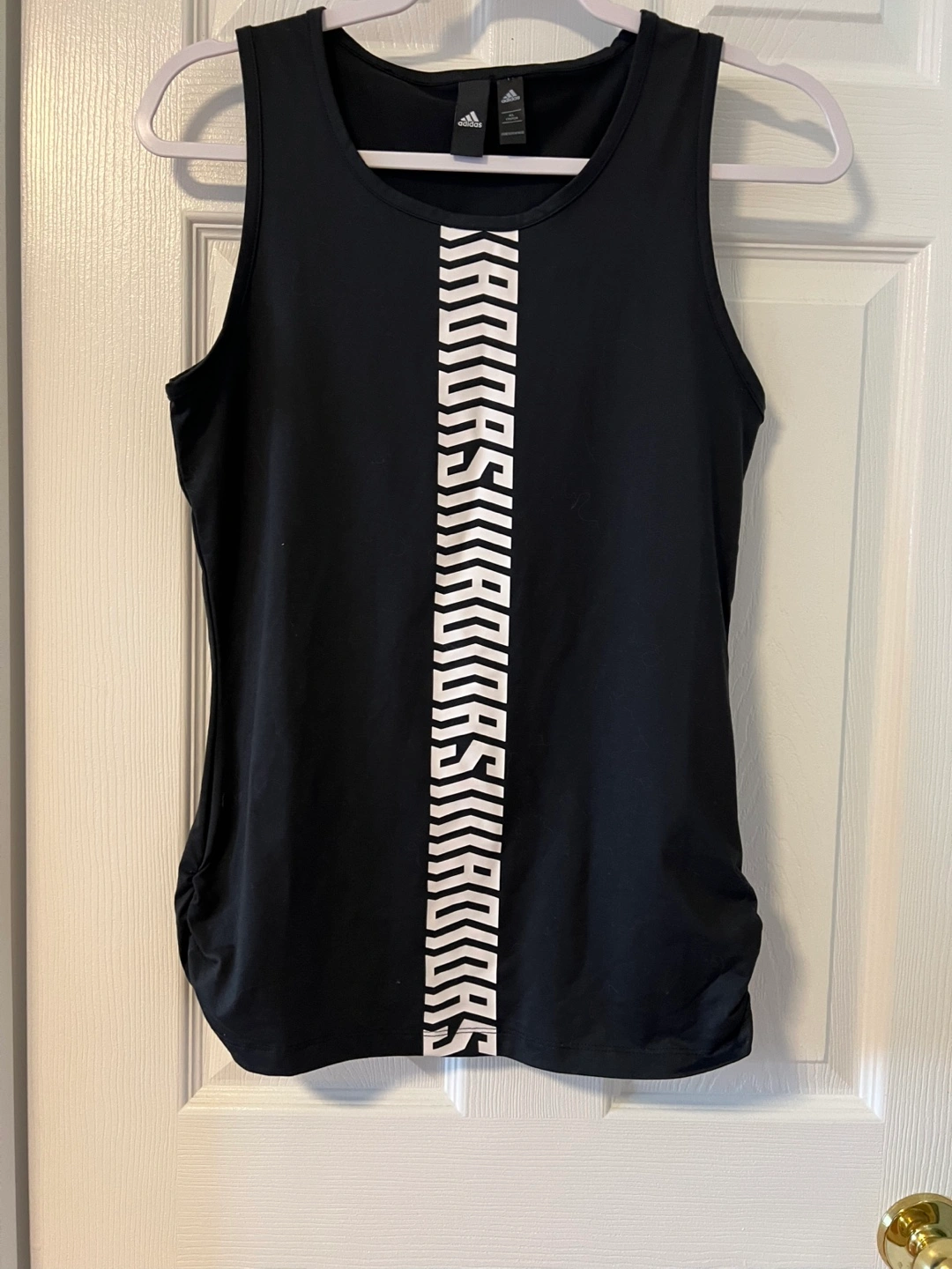 Women's athletic tank top. Black with white graphic design. Size A/L.