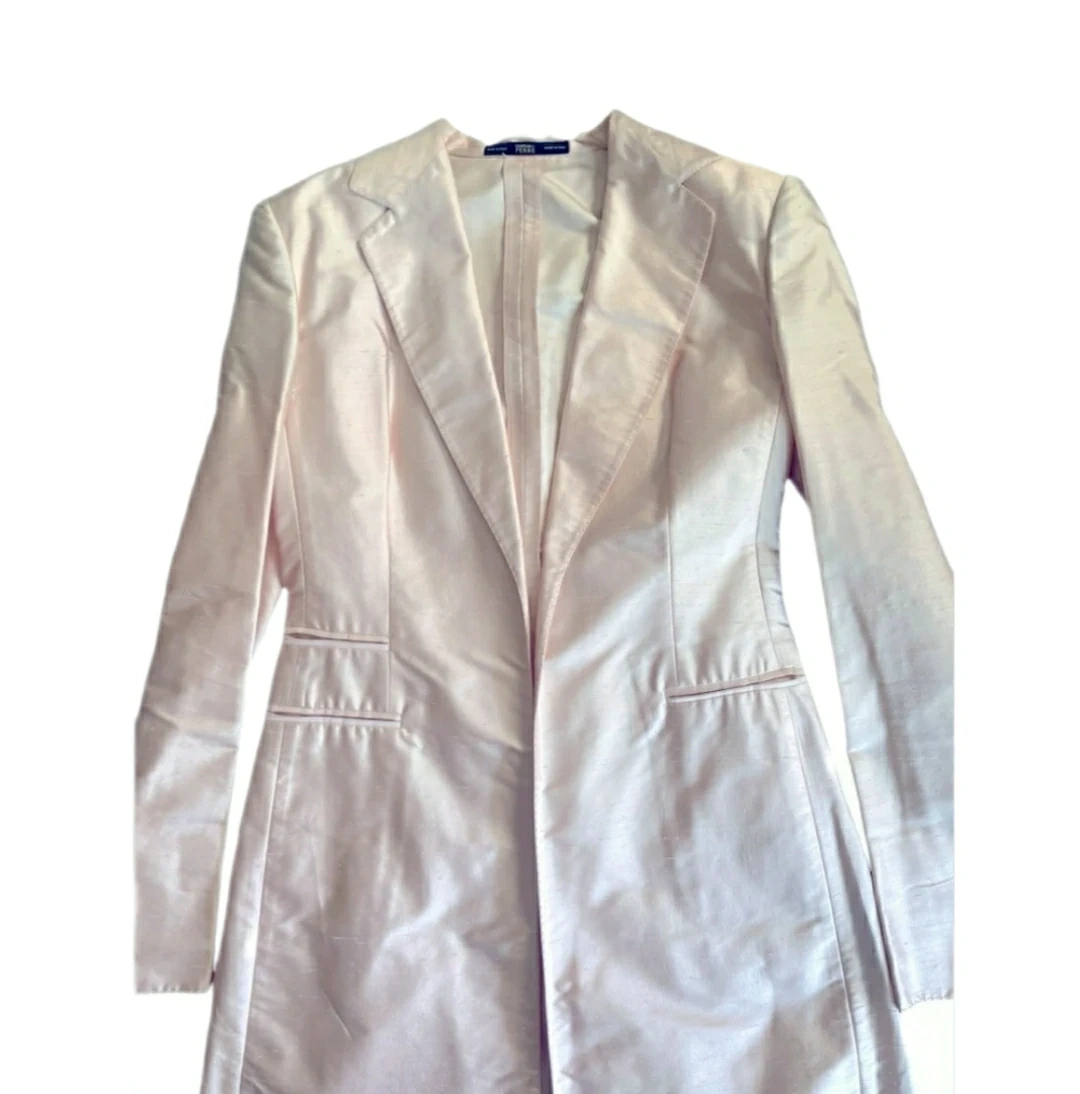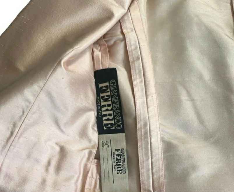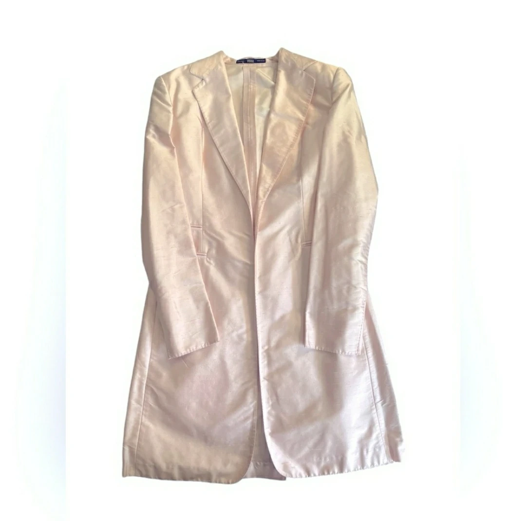 vintage italian designer piece: pristine condition 3/4 length silk blazer jacket. size 40, best for those that wear medium (size 6-10). gorgeous piece that looks great belted but cuts a sleek profile without.