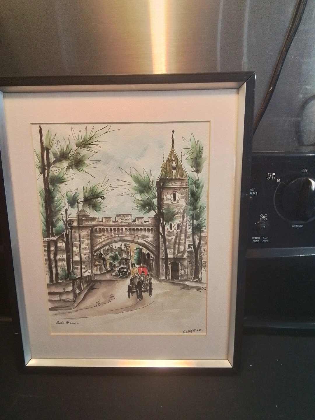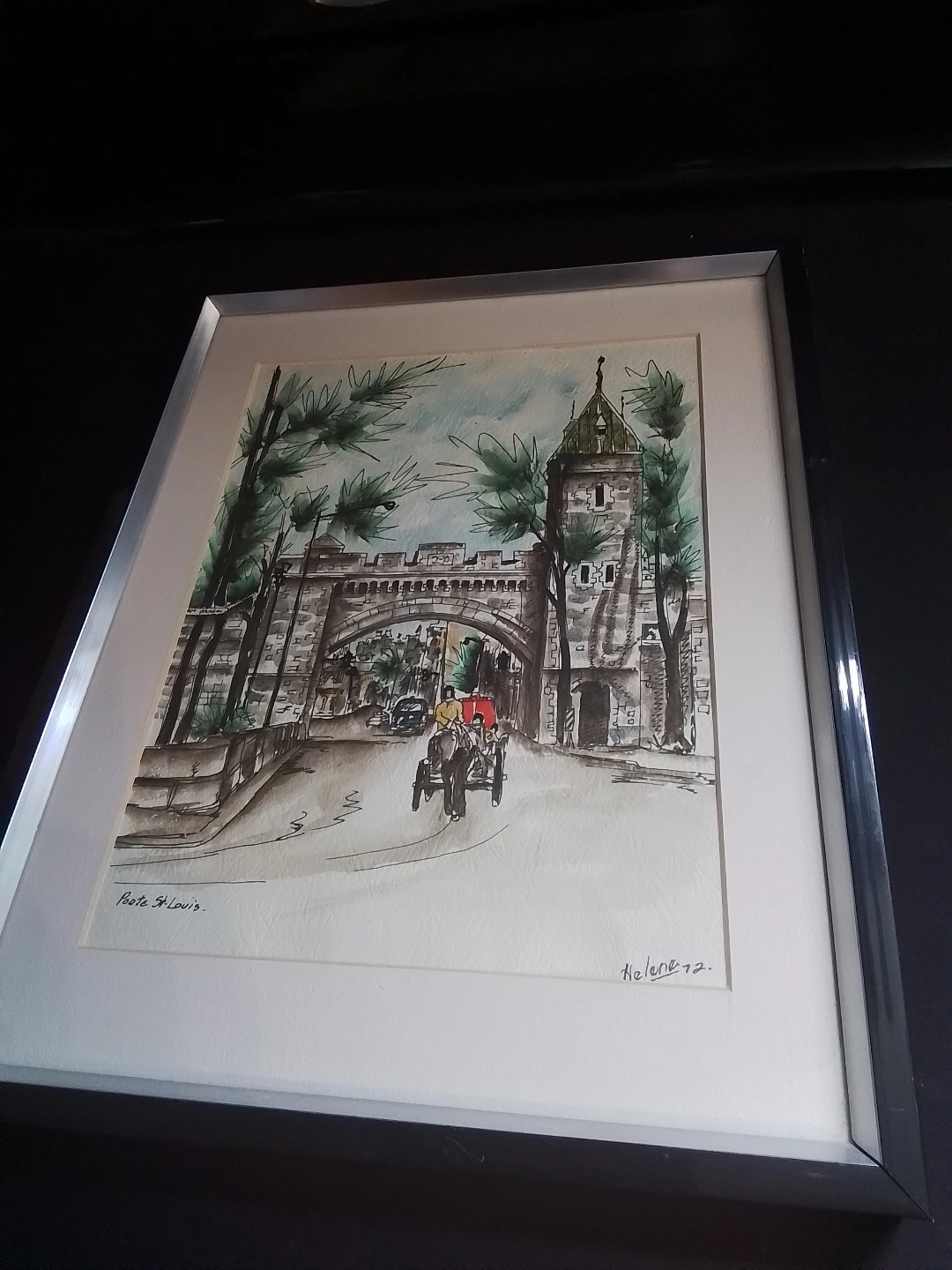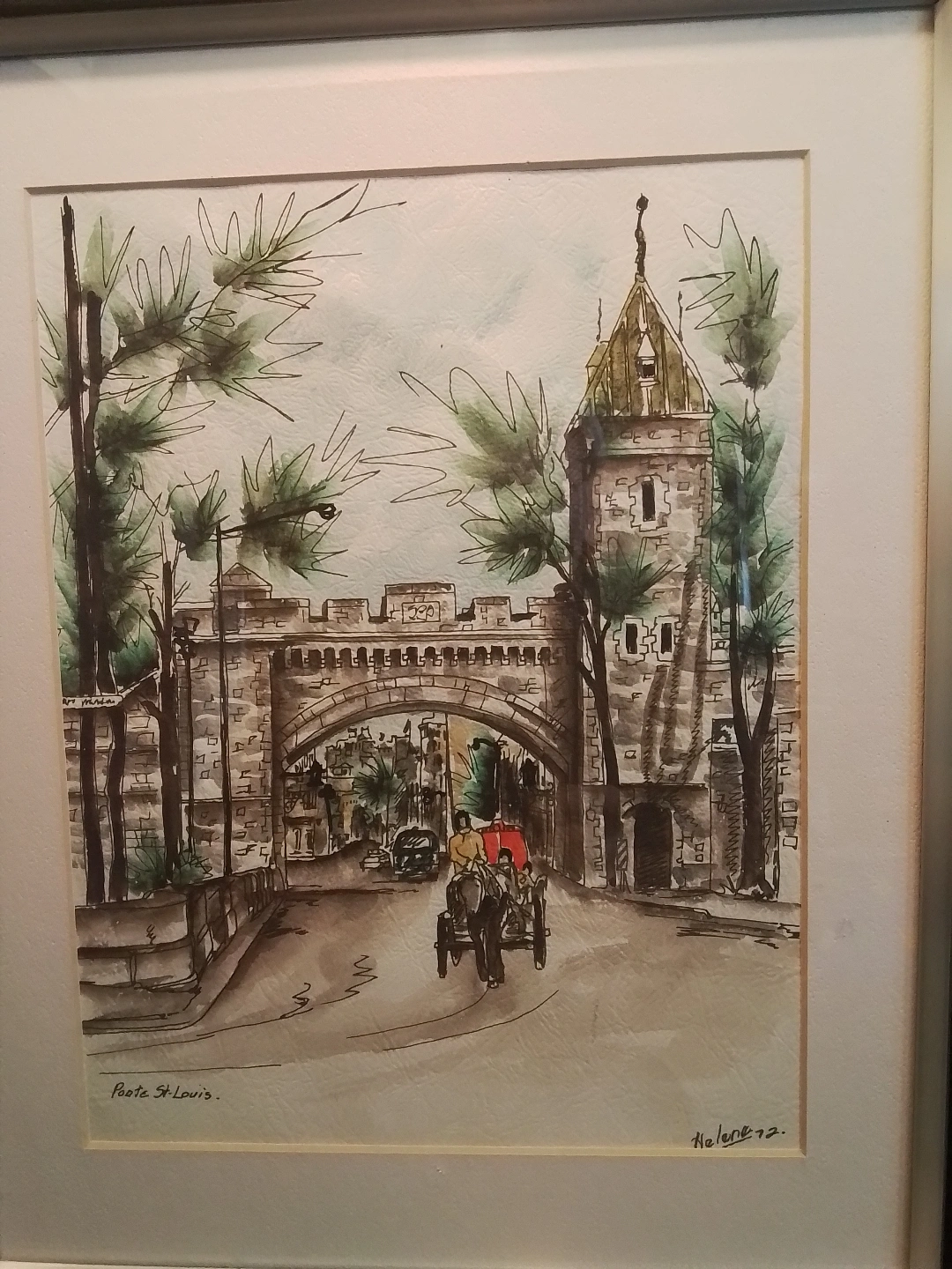 114Framed Watercolor Painting of Porte St-Louis Original framed watercolor painting. Depicts Porte St-Louis. Signed Helene 72. Beautiful colours and details. A lovely addition to any home. Porte St. Louis Original Watercolor Painting I'm offering a vintage framed watercolor print of Porte St. Louis, signed 'Helene '72'. This piece captures a charming street view and is in good condition considering its age. A well done watercolour. Condition: Good Condition Measurements: 11.5 by 14.5 inches Pickup at Young Street and Steels Ave