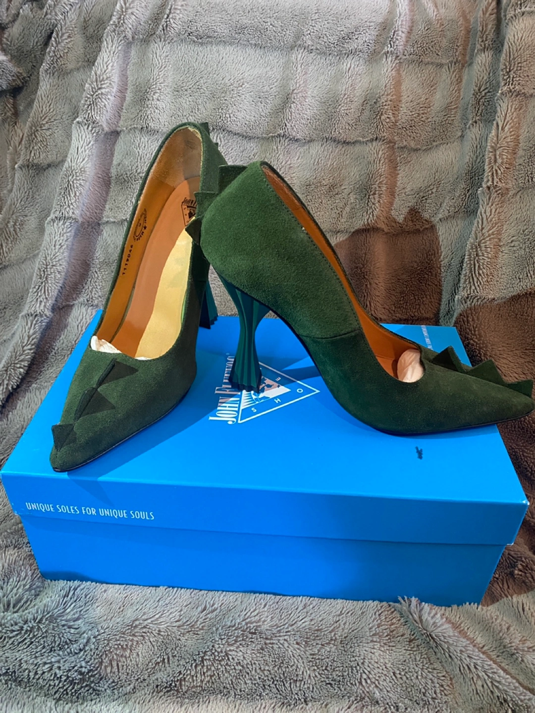 John Fluevog Queen of the Skies Suede Heels - Size 9