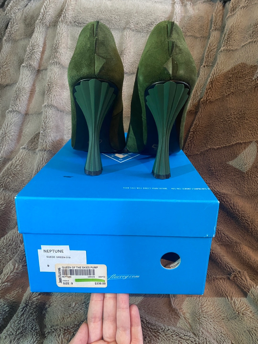 Stunning green suede pumps.